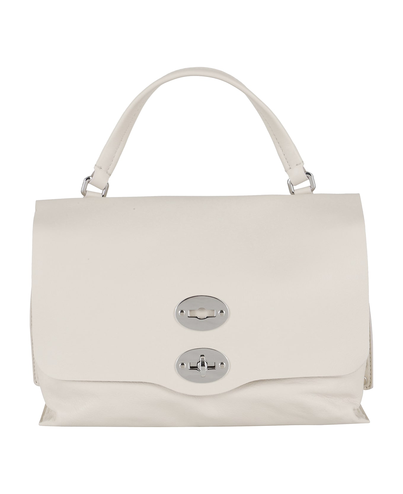 Saeta Postina bag - Zanellato - White color - Made of leather - Double internal compartment - Studded side applications - Top handle - Adjustable and removable shoulder strap - Swivel flap closure - Dimensions: 29 x 20 x 15 cm.