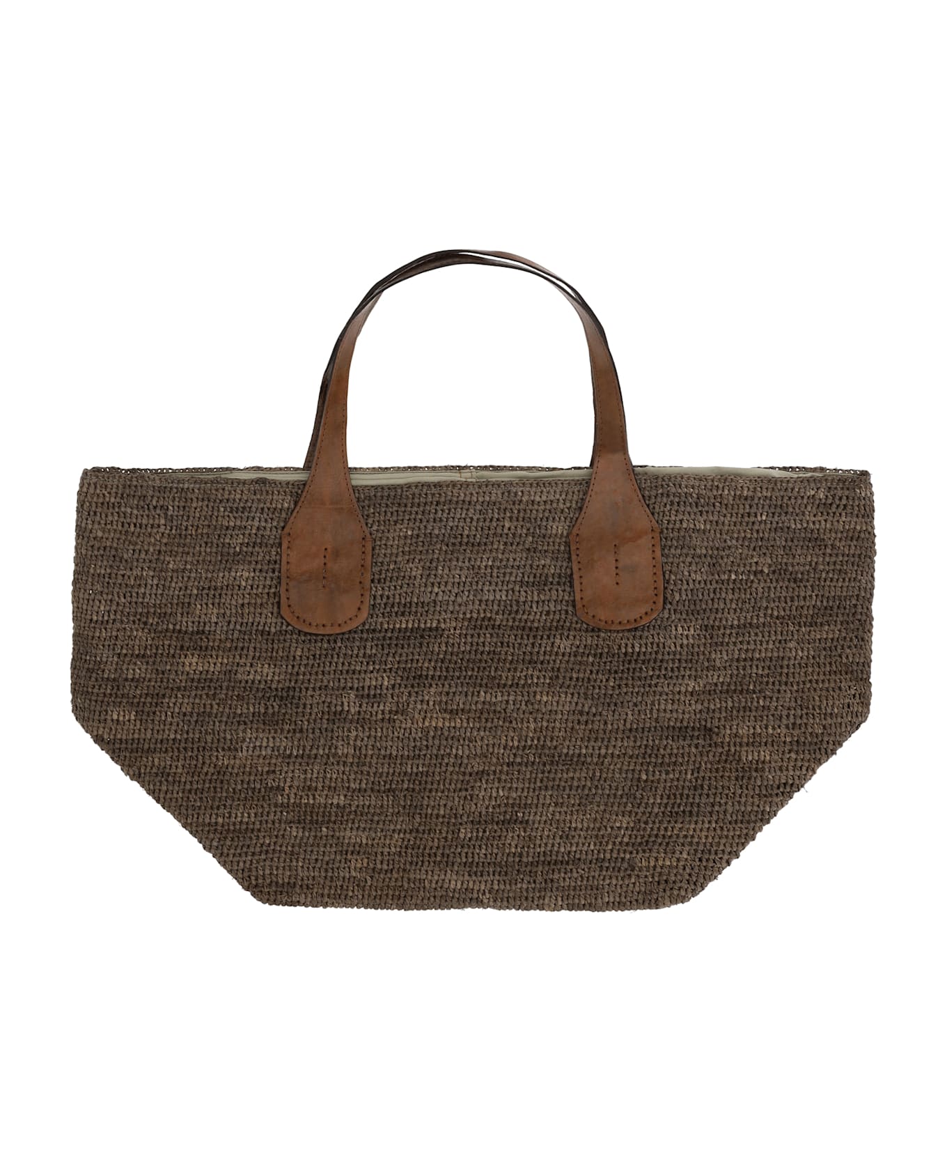 Ibeliv's tokyo tote bag is an elegant and practical accessory made of crocheted raffia for a refined and natural design. the two vegetable-tanned leather handles add a touch of class, while the magnetic snap-button closure system provides security and ease of use. inside, the four pockets provide ample space and organization, making this bag perfect for a casual-chic look without sacrificing functionality.