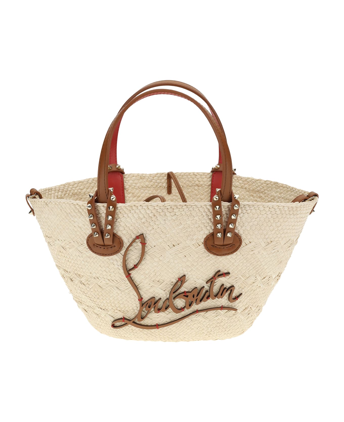 Christian louboutin's raffia small tote bag is a stylish and versatile summer accessory. made of raffia, it features two leather handles that add a refined contrast to the natural design. the brand's iconic signature stitched on the leather front is a distinctive detail that expresses christian louboutin's luxurious and unmistakable character. an ideal model for those seeking a touch of class and practicality for the warm season.
