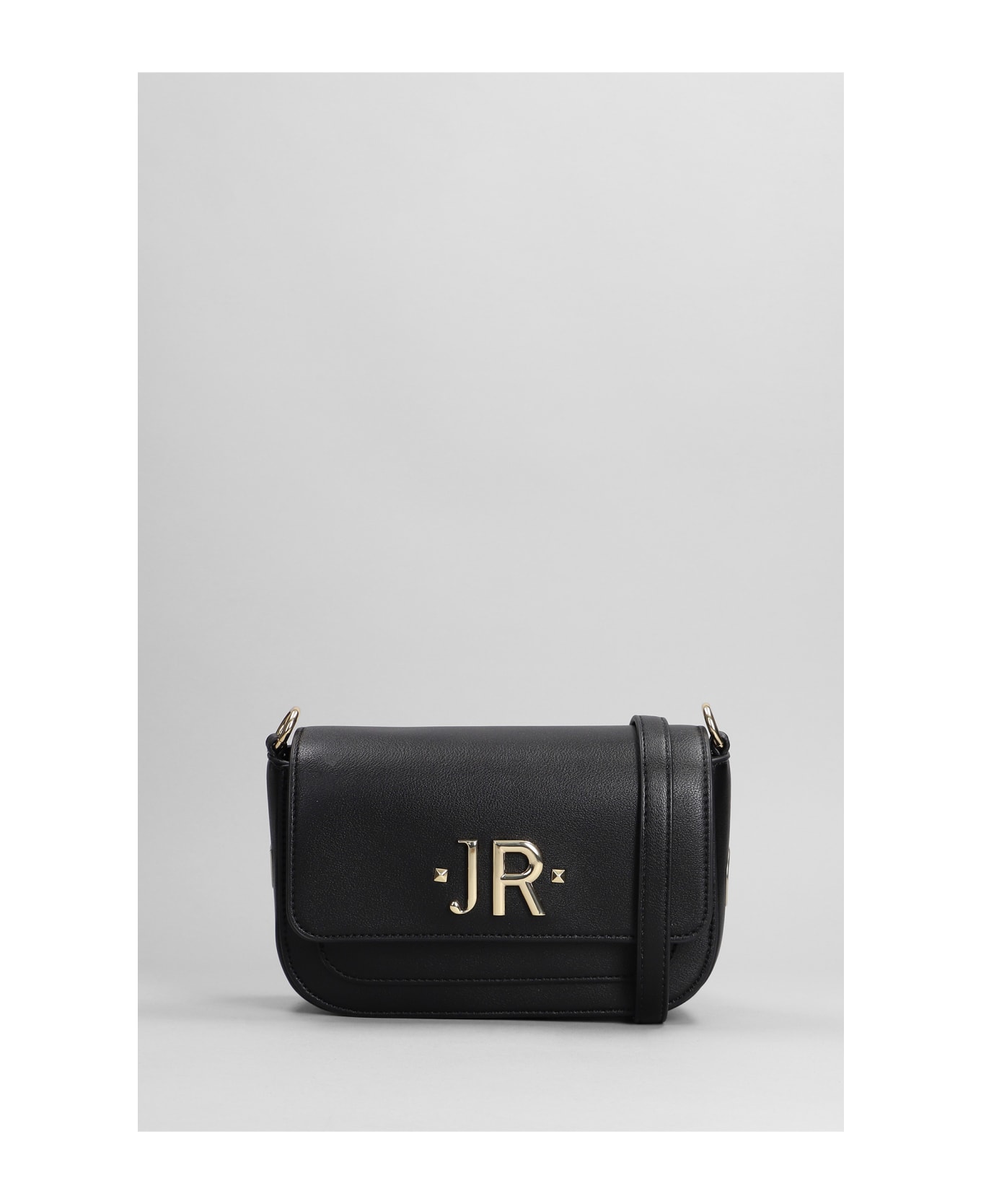 Ranaide Shoulder bag in black leather, chain and leather carry, magnetic closure, gold hardware, front logo, 100% leather, Made in China, Height 130 mm, Width 205 mm