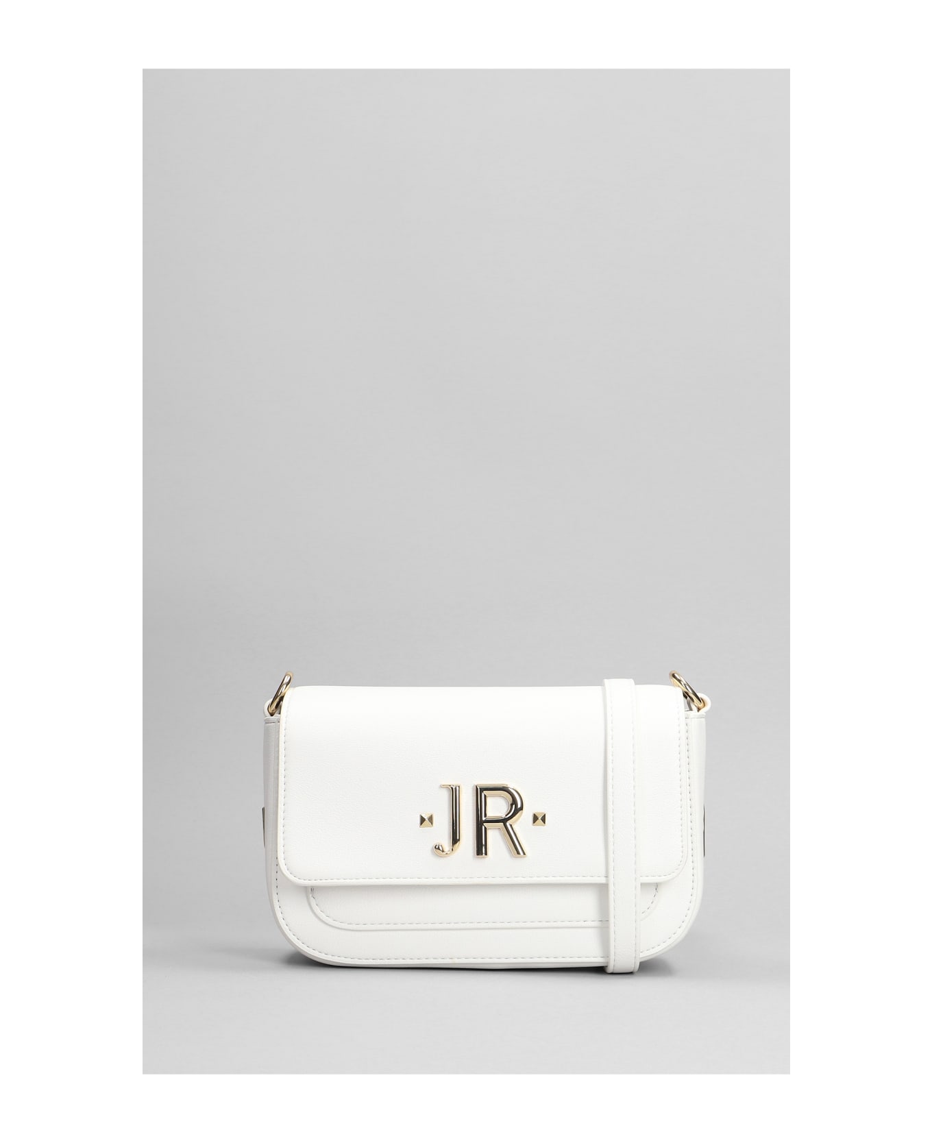 Ranaide Shoulder bag in white leather, chain and leather carry, magnetic closure, gold hardware, front logo, 100% leather, Made in China, Height 130 mm, Width 205 mm