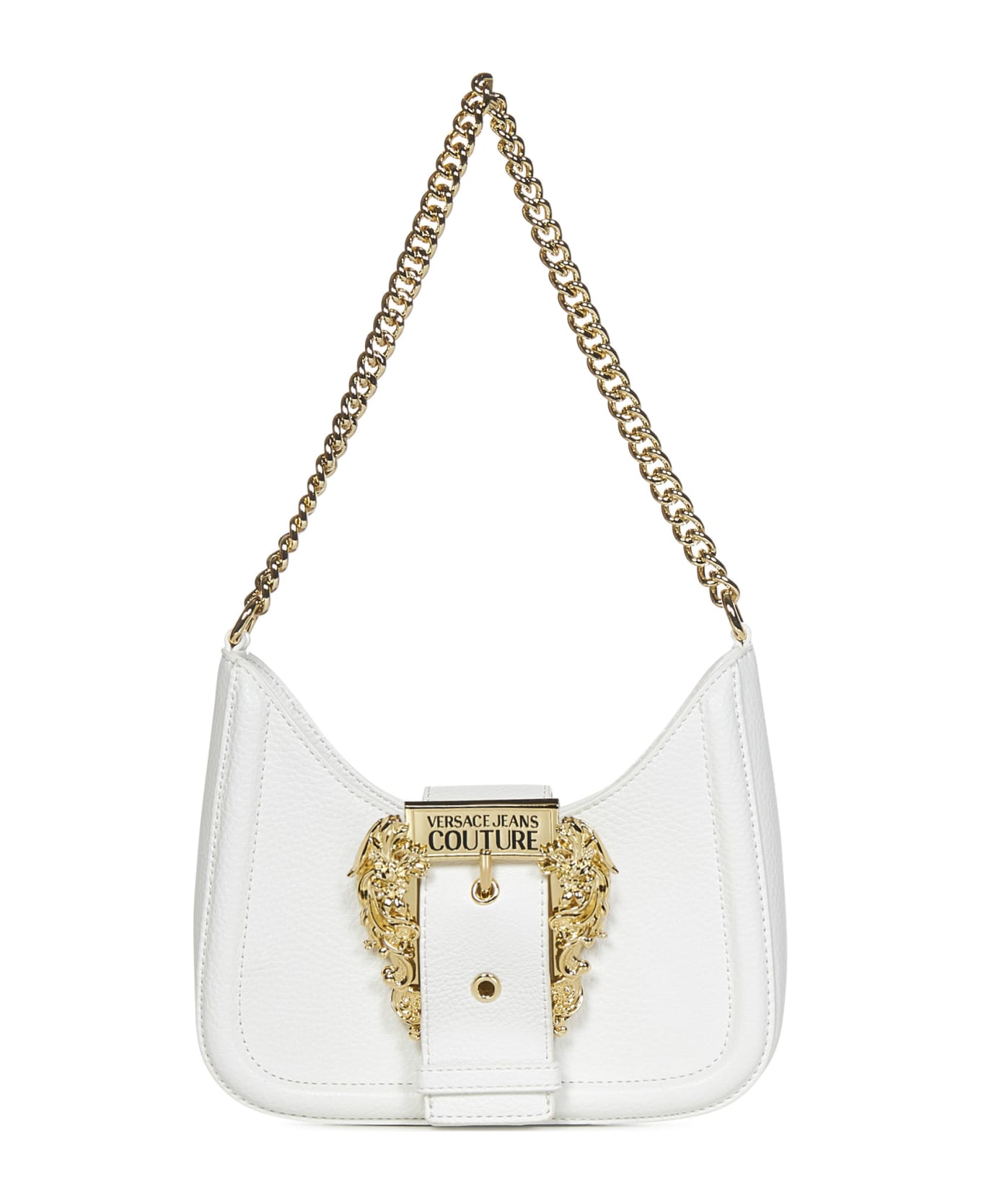 • Front closure with maxi gold-colored Baroque buckle engraved with logo and metal button