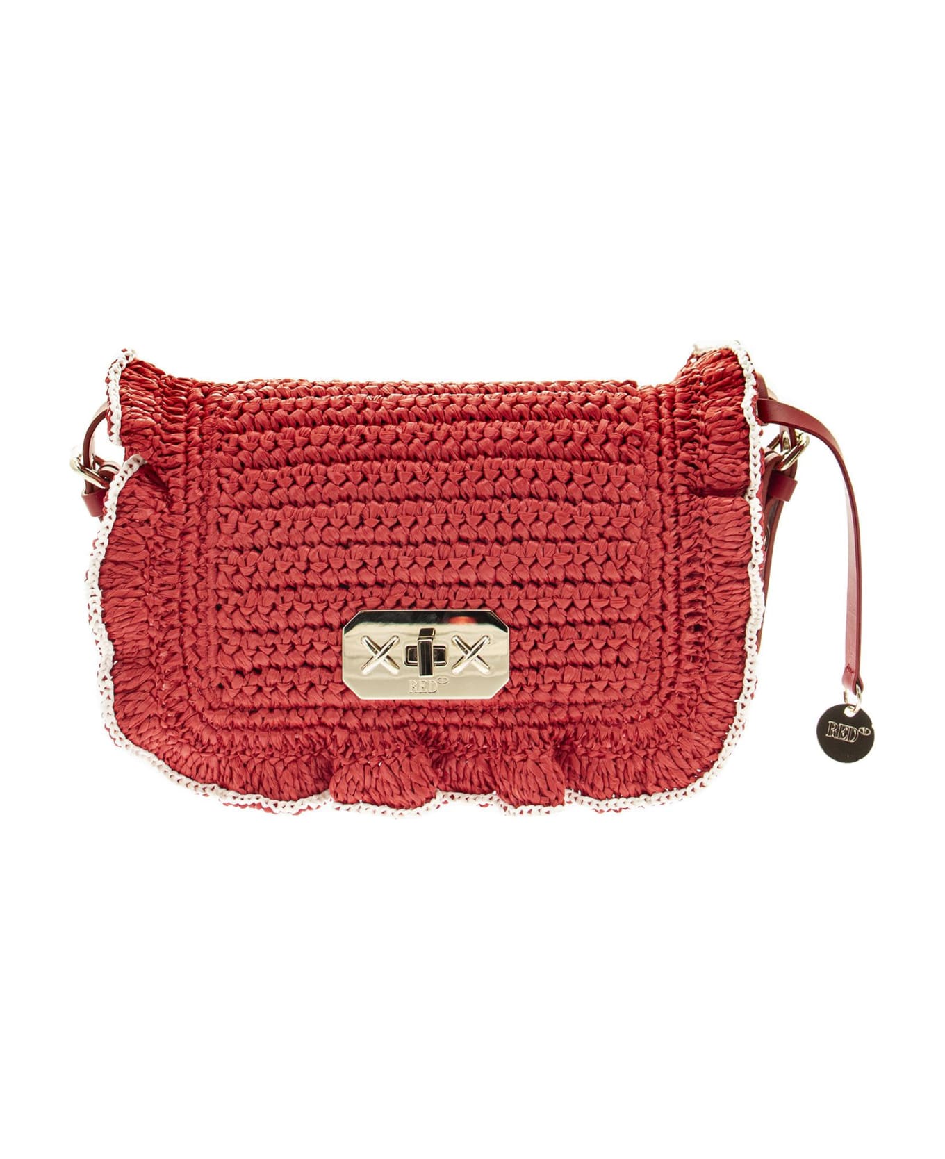 Shoulder bag in raffia with romantic ruffles and shoulder strap with stitch detail. Detachable shoulder strap. Rotating lock closure. Cotton lining printed with the iconic point d'esprit motif. Light gold metal finishes. Made in Italy. - Shoulder bag - Romantic ruffles - Closure with padlock DESIGNER ID: VQ0B0C03MVK C12