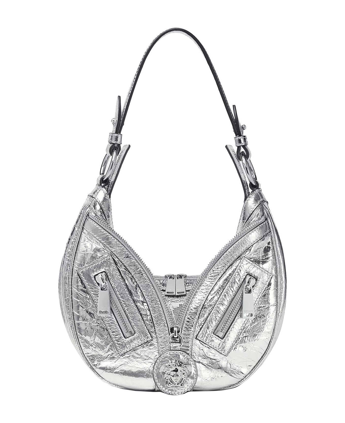 Metallized leather shoulder bag with iconic frontal Medusa - Closure With Zip And Double Slider - Removable And Adjustable Shoulder Strap - Two Internal Pockets And One Internal Pocket With Zip - Made In Italy - Leather