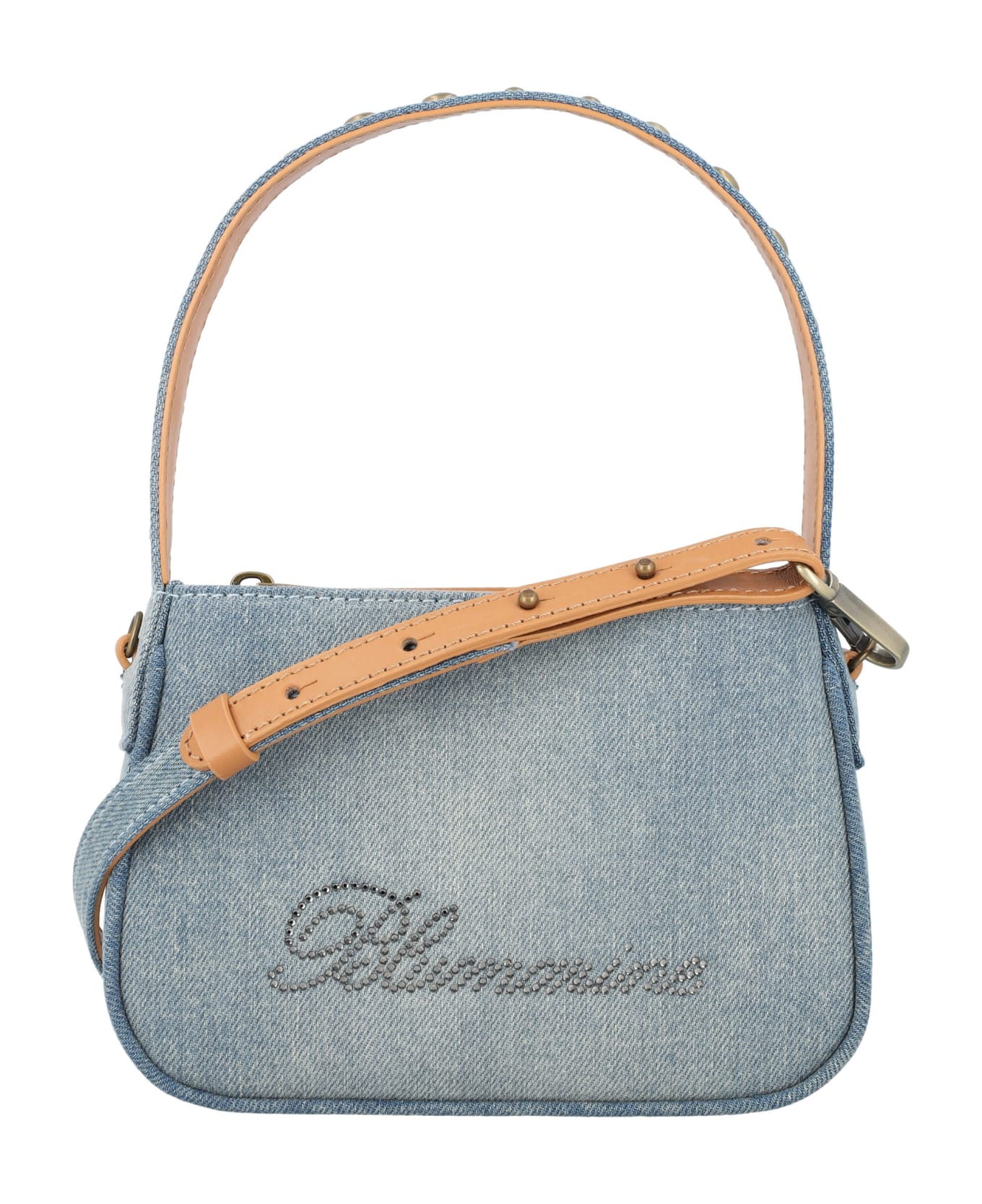 Rhinstone Logo Denim Bag By Blumarine. Featuring: Top Handle With Studs Embellishment Zip Fastening Rhinstone Logo At Front Adjustable And Removable Shoulder Strap Leather Trim Width: 18,5 Cm Height: 12,5 Cm Depth: 5 Cm
