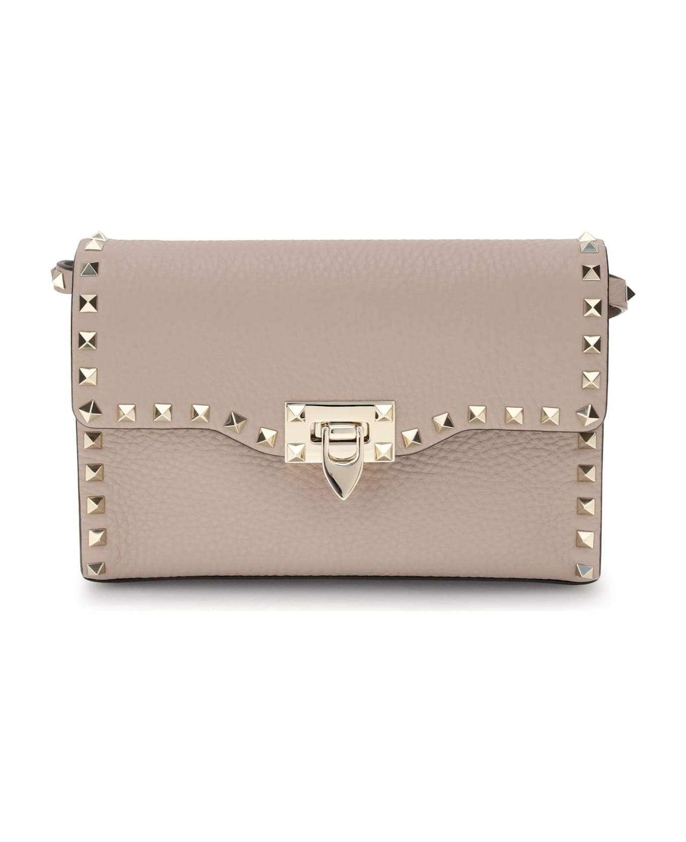 Valentino garavani's rockstud shoulder bag is the epitome of bold elegance. with a front flap and swivel closure, it features stud-decorated profiles that enhance its gritty character. the adjustable and removable shoulder strap offers versatility, allowing it to be worn in a variety of ways, while the iconic signature press-stamped back adds a distinctive touch of class. an accessory that combines practicality and style without compromise.