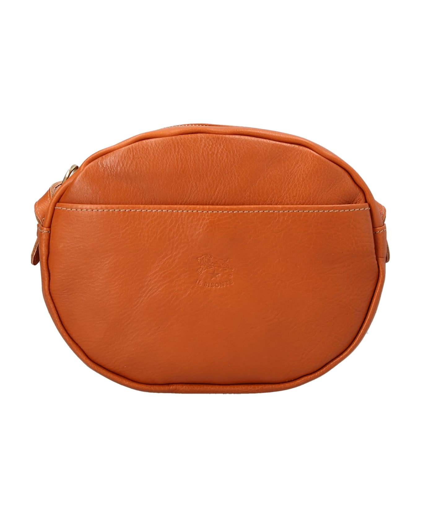 Leather crossbody bag with front embossed logo, zip closure and awith adjustable shoulder strap.