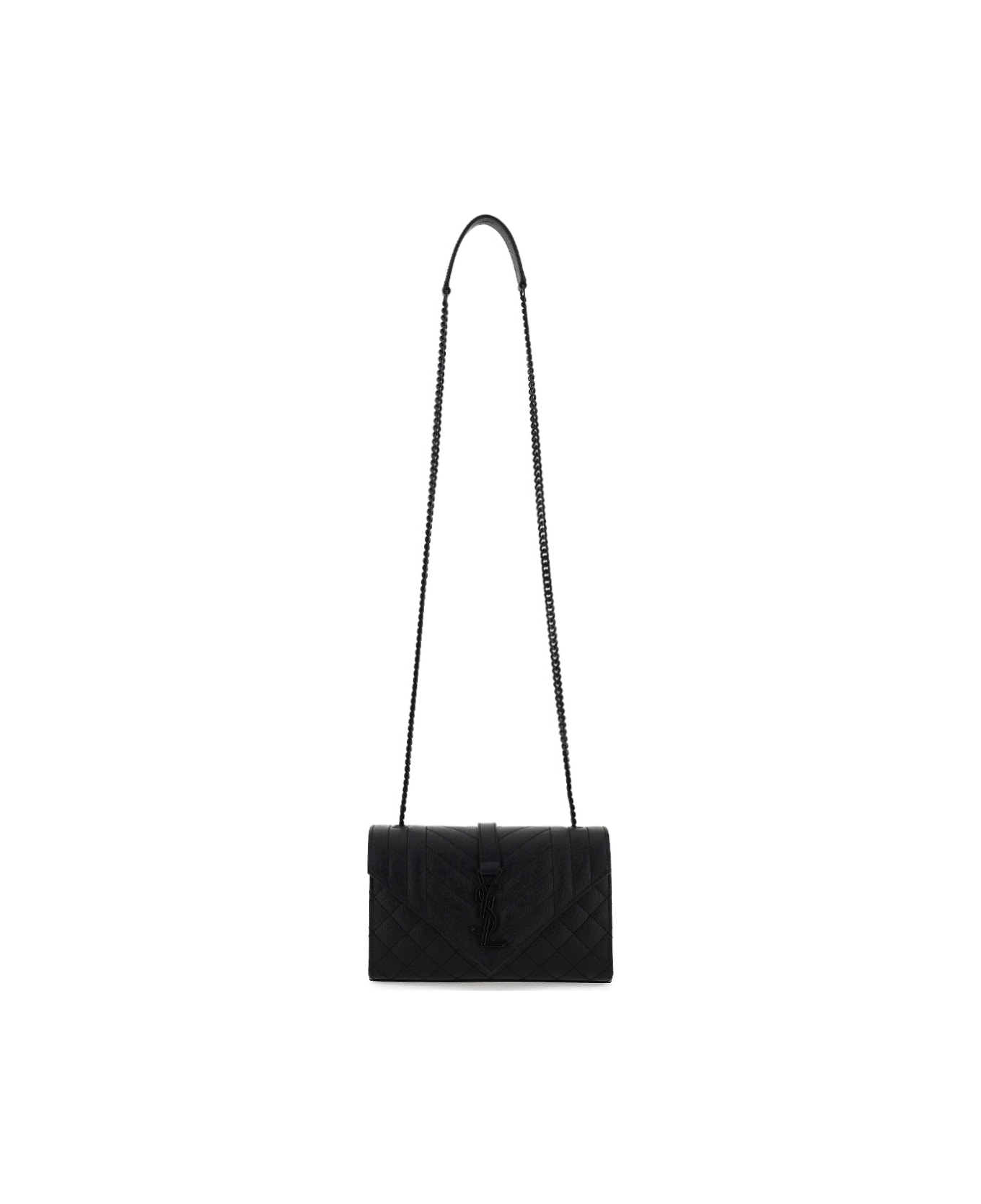 Calfskin Small Satchel Shoulder Bag by Saint Laurent, quilted texture, front monogram logo plaque, magnetic button closure, chain shoulder strap, back flat pocket, internal card slot. Composition: 100% Calf Leather Bos Taurus