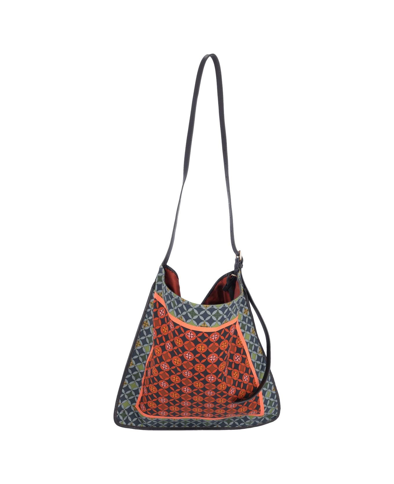 Dries Van Noten 'Scarf' large shoulder bag in multicolour cotton blend with geometric pattern, adjustable shoulder strap, removable inner clutch, main inner compartment.