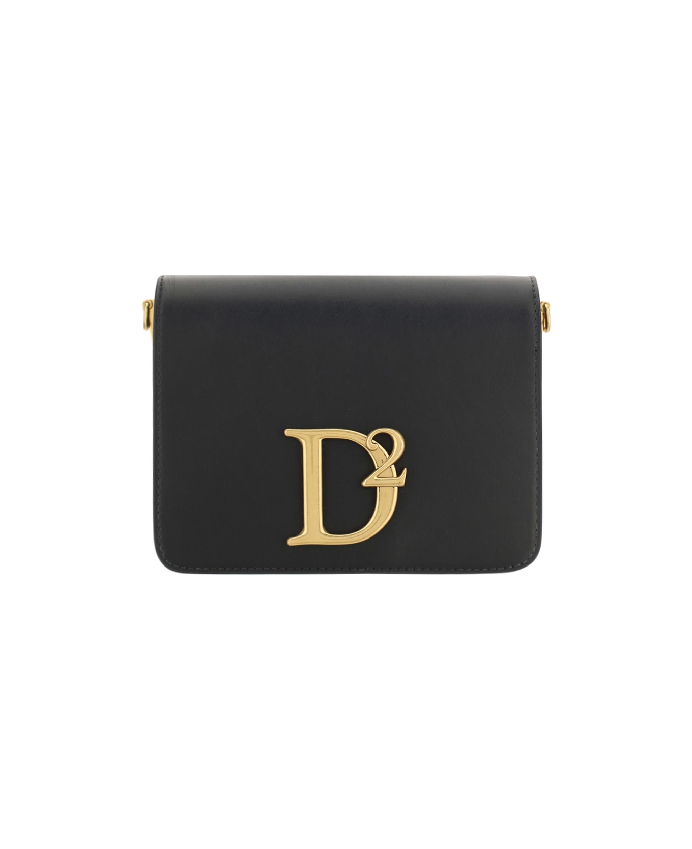 Calfskin shoulder bag by dsquared2, gold-tone logo plaque, detachable shoulder strap, foldover top with snap fastening, partitioned compartment.