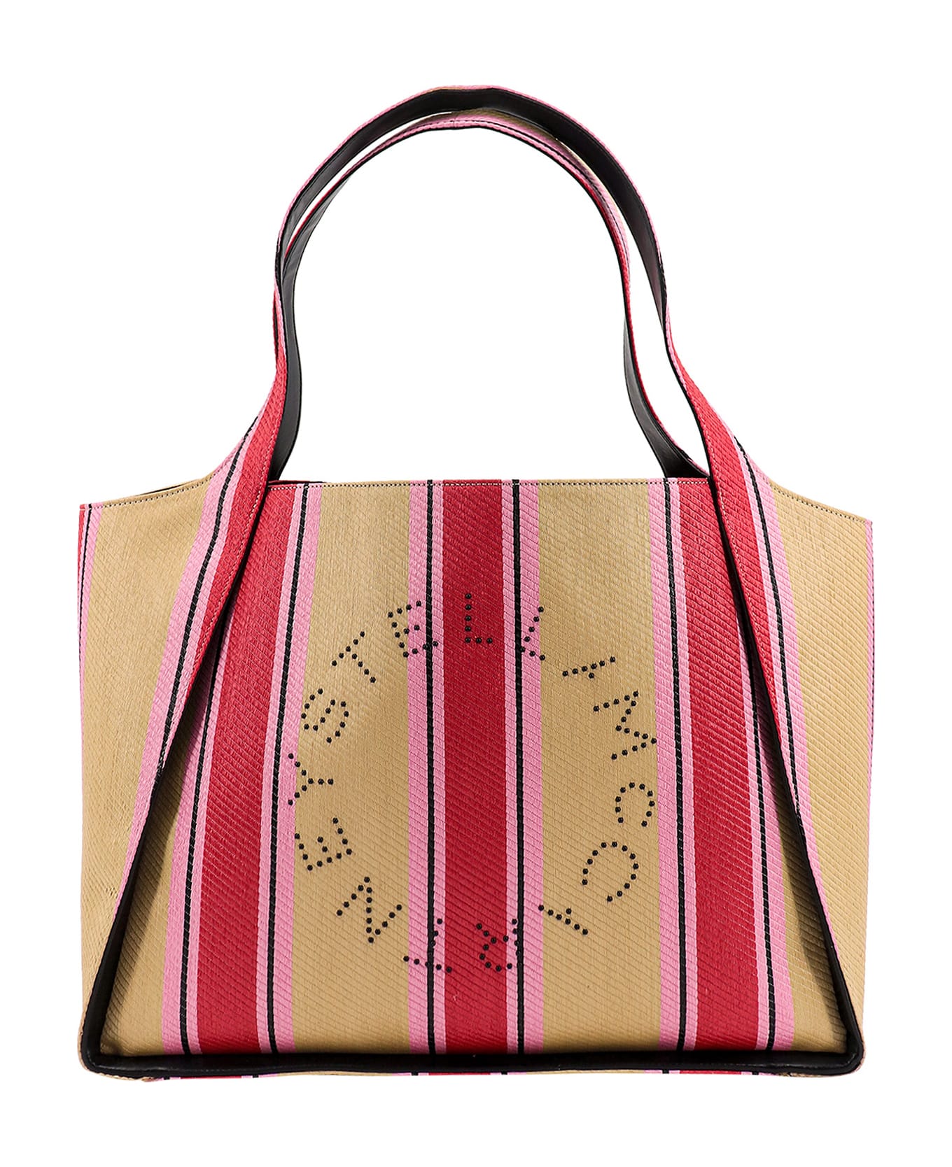 Rafia shoulder bag with multicolour print and logo with studs on the front