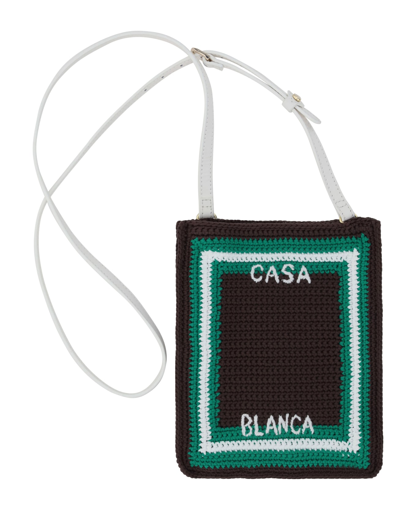 Shoulder bag by casablanca, multicolored crochet design, iconic brand monogram embroidered on front and back, adjustable leather shoulder strap. Composition: 100% % Nylon
