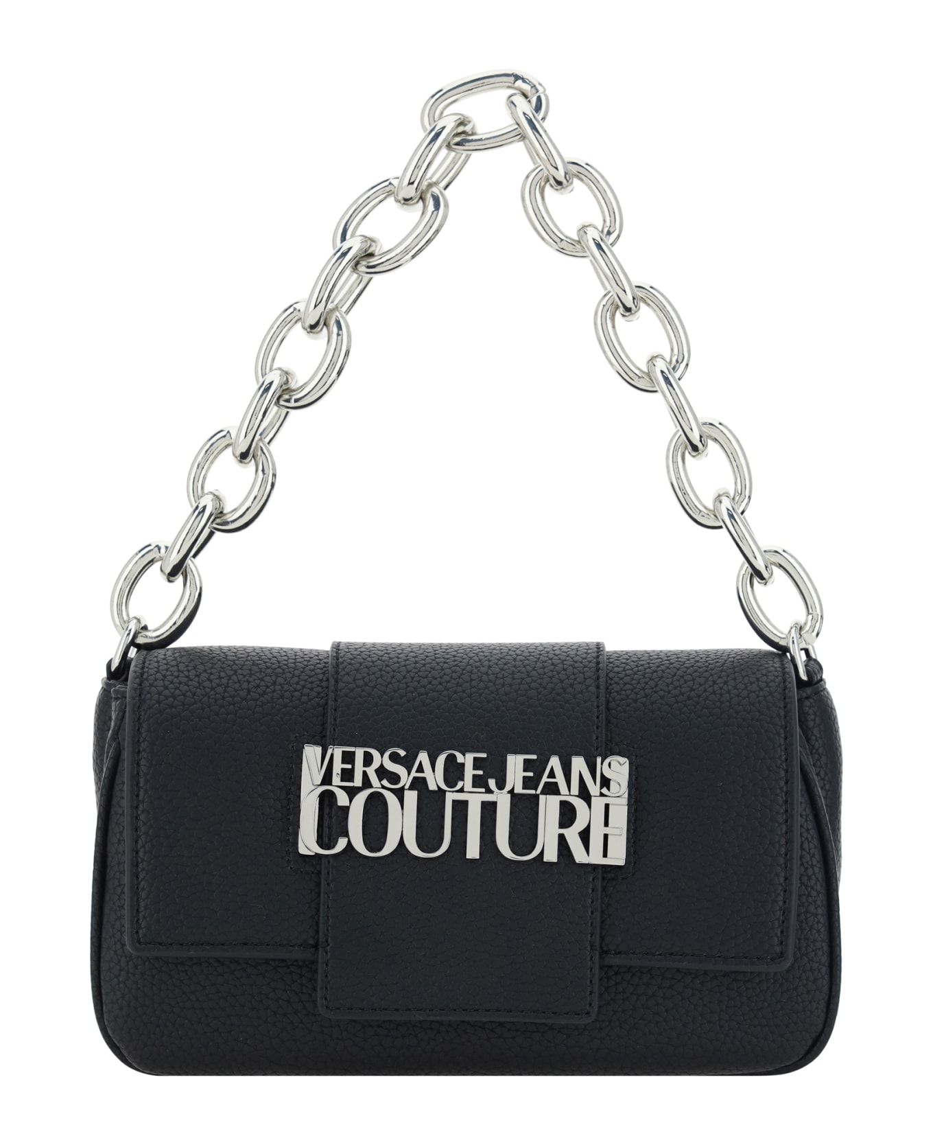 Shoulder bag by versace jeans couture, chain handle, removable and adjustable shoulder strap, front closure by magnetic flap, iconic brand monogram applied in contrast on the front, single interior compartment.