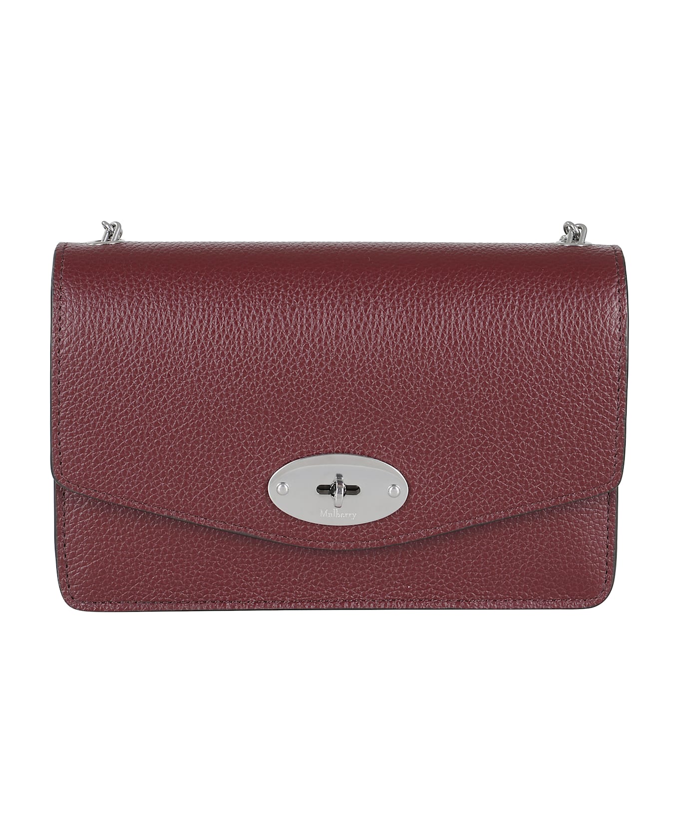 Small Darley bag - Mulberry - black cherry color - classic grained leather - rectangular design - swivel closure - removable chain strap - silver metallic details - Height 13 cm, Width 19 cm, Depth 4. 5 cm