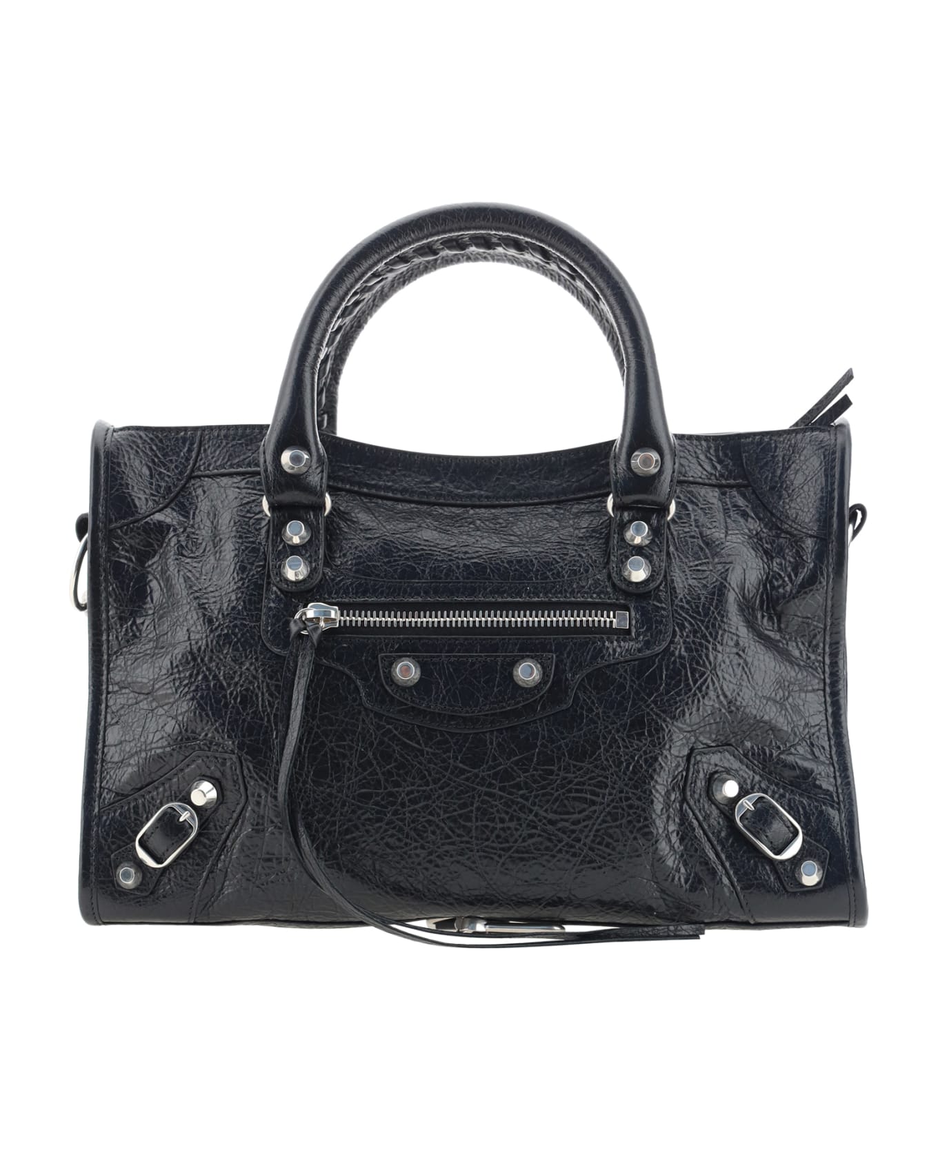 Lambskin small le city handbag by balenciaga, made of wrinkled-effect arena leather, adjustable and removable shoulder strap, two hand-woven leather handles, brass hardware, knotted leather zipper and zipper puller closure, knotted leather front zipper pocket and zipper puller, interior zippered pocket, cotton canvas lining.