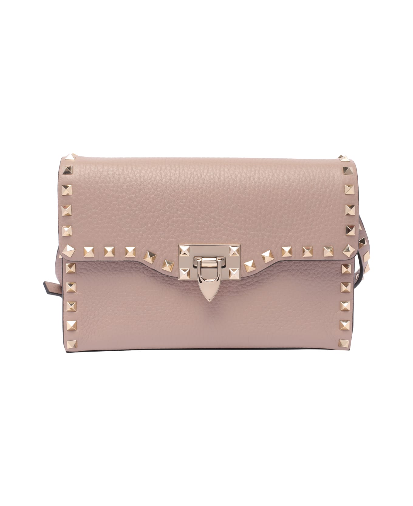 Valentino Garavani poudre Small Rocktud crossbody bag, turn-lock, inner open pocket, adjustable shoulder strap Composition: 100% Calf Leather