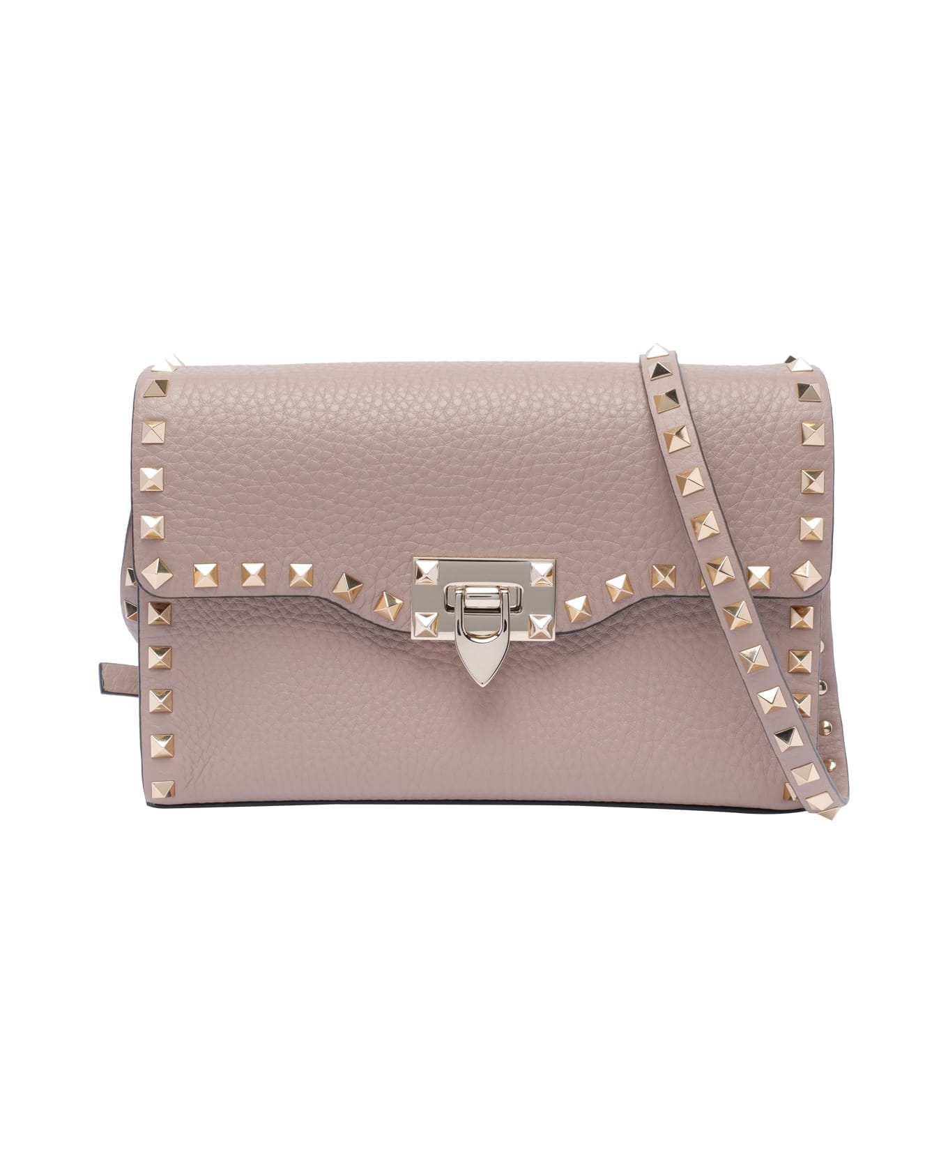 Valentino Garavani poudre Small Rocktud crossbody bag, turn-lock, inner open pocket, adjustable shoulder strap Composition: 100% Calf Leather