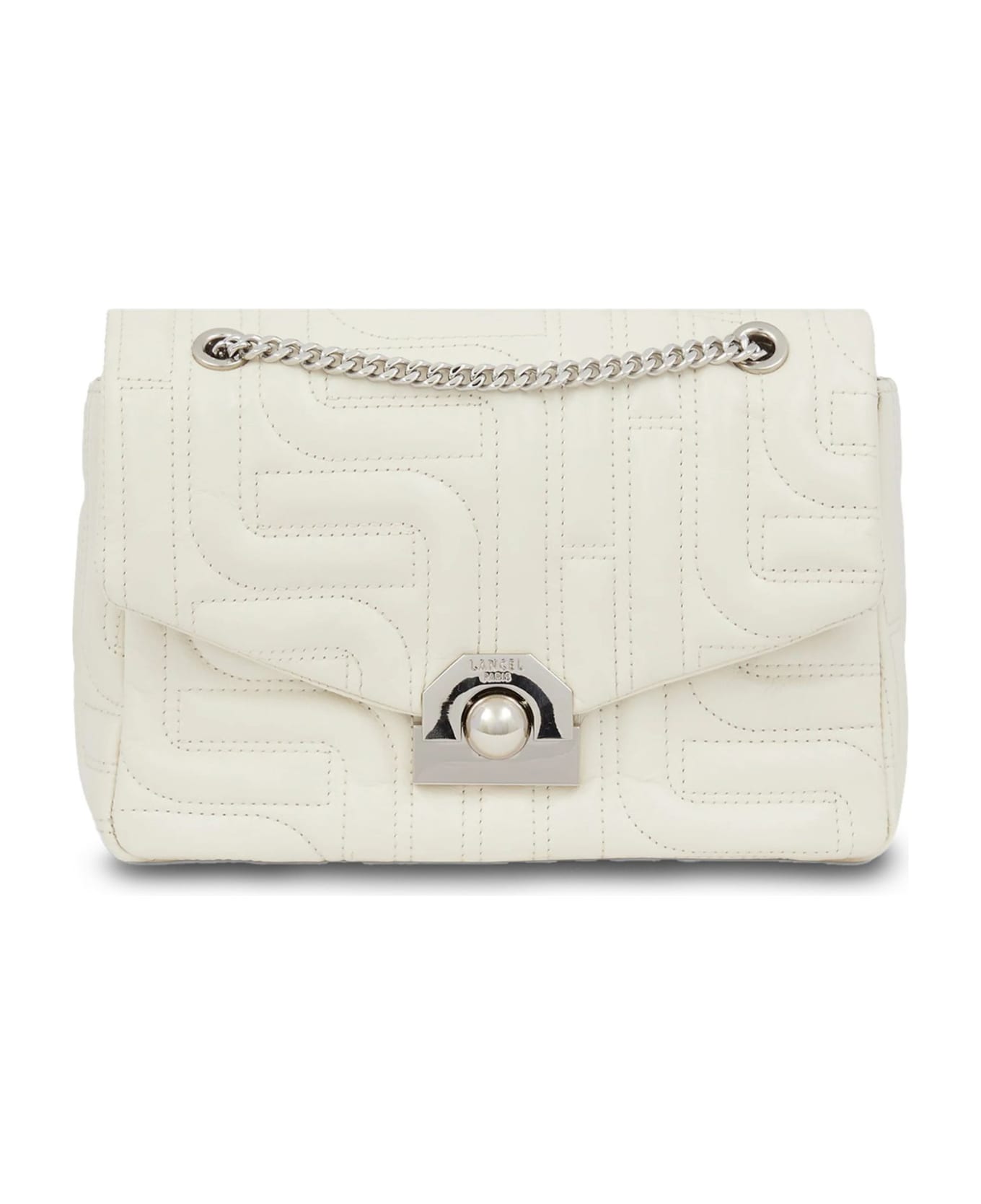 Smooth cowhide leather, soft and quilted flap bag, textile lining, one inner zipper pocket, one inside patch pocket, sliding chain and leather shoulder strap, one-click clasp engraved 'LANCEL', hot-pressed 'LANCEL' logo with silver finish, 24 x 19 x 9 cm