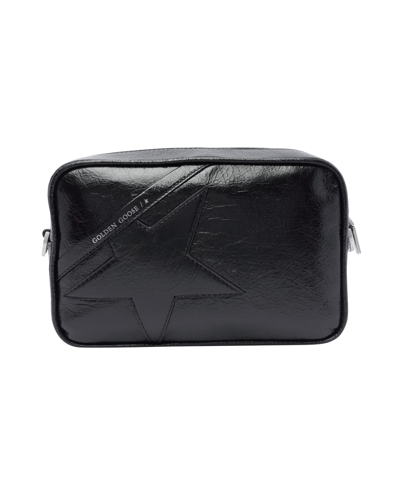Golden Goose black Star crossbody bag, zip closure, inner open pocket, one external pocket, removable and adaptable strap, frontal tone on tone star logo Composition: 100% Calf Leather