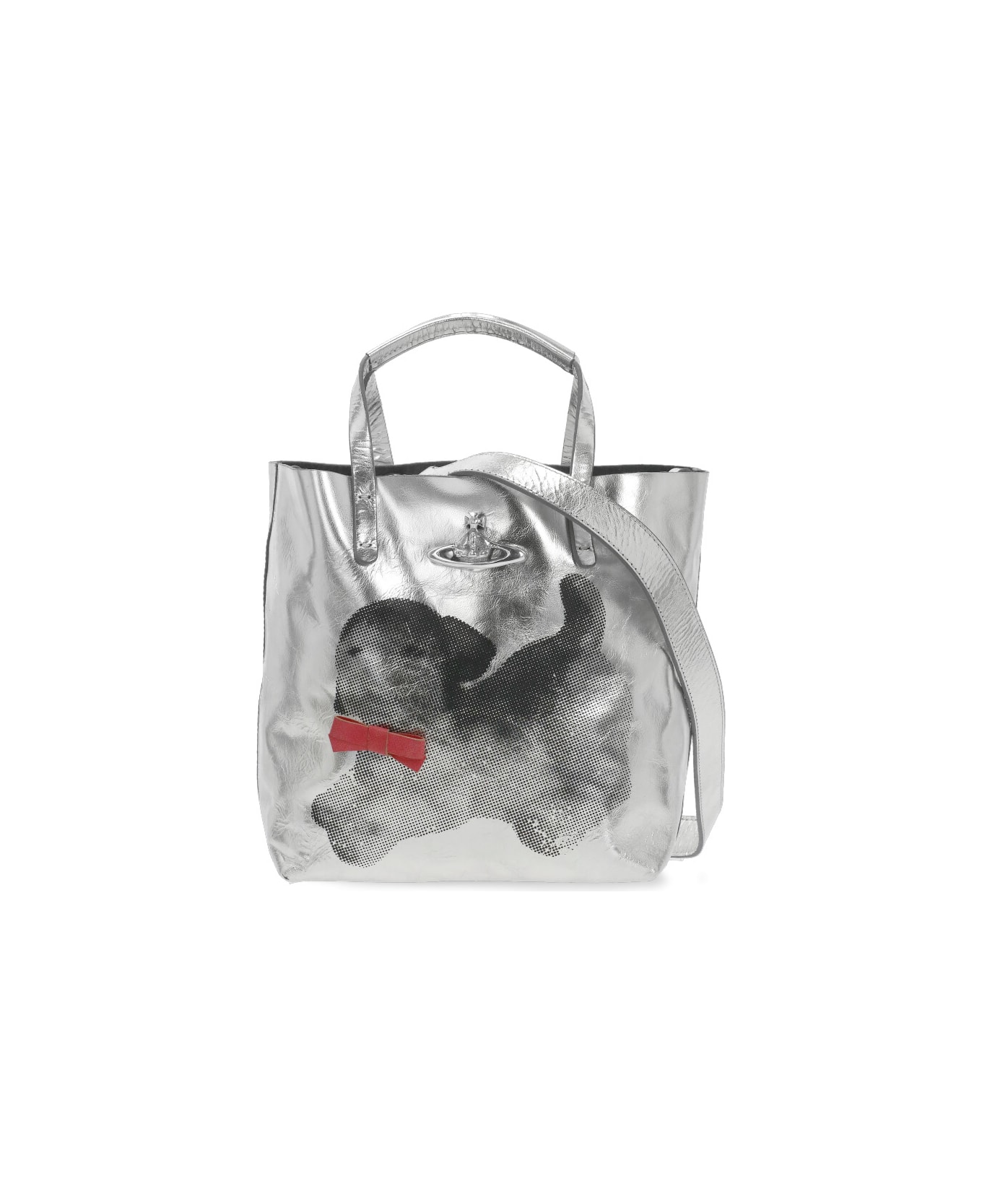 - Silver Vivienne Westwood leather shoulder bag for woman - Two handles - One removable and adjustable shoulder strap - Front metal Orb logo - Front contrasting color print with bow detail