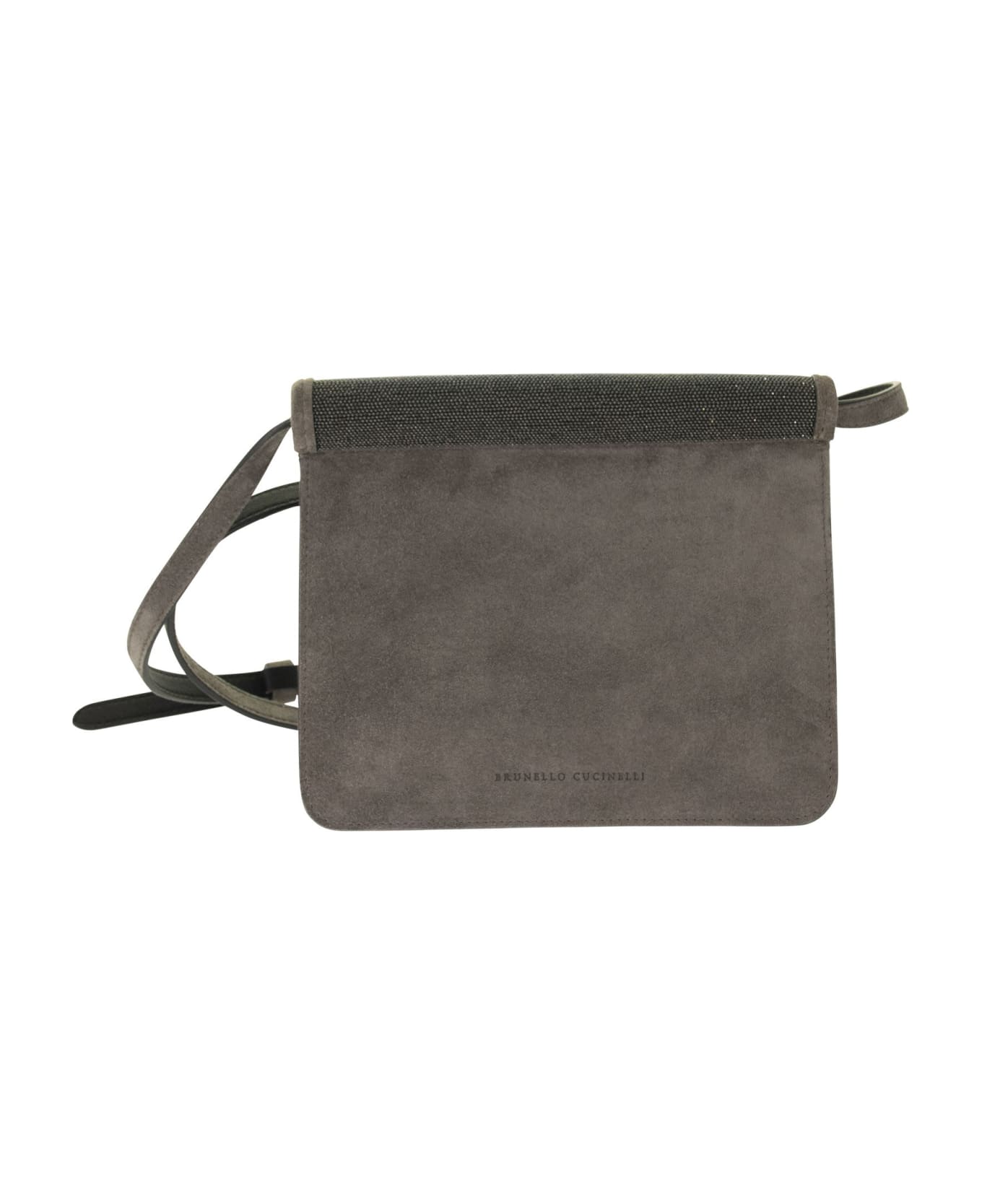 A beam of radiant light meets fine Brunello Cucinelli materials in the new Precious bag in suede. The upper part is completely covered with rows of shiny jewels that make the accessory very elegant and suitable for special occasions. The contemporary shape and shoulder strap complete the style with a practical and functional detail. - Flap closure with magnets - Shoulder strap - Nickel-free jewellery decoration DESIGNER ID: MBDLD2438 C2126 Composition: 100% Suede Leather Application Eco Finish Brass