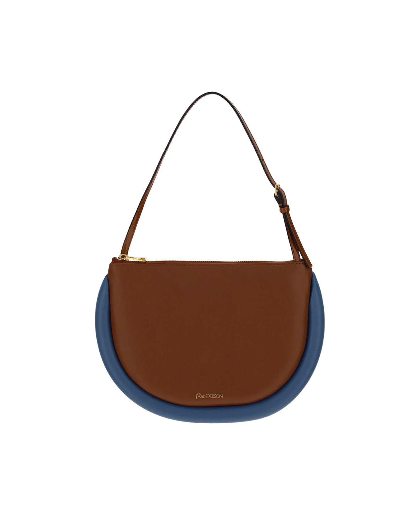 Lambskin the bumper moon bag by j. w. anderson, moon shape, reinforced tubular bottom, top zipper closure, thin adjustable shoulder strap in contrasting shiny leather, brand signature press-stamped on front, inside welt pocket.