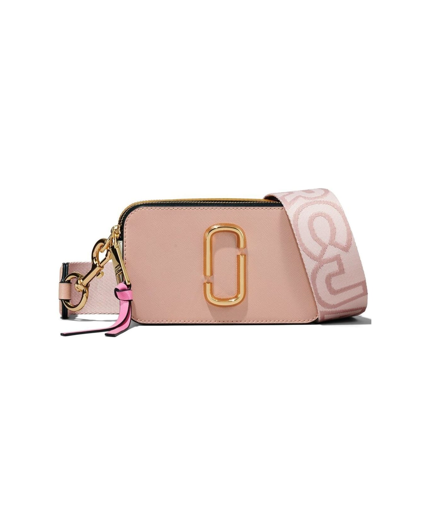 'the Snapshot' Light Pink Shoulder Bag With Metal Logo At The Front In Leather Woman