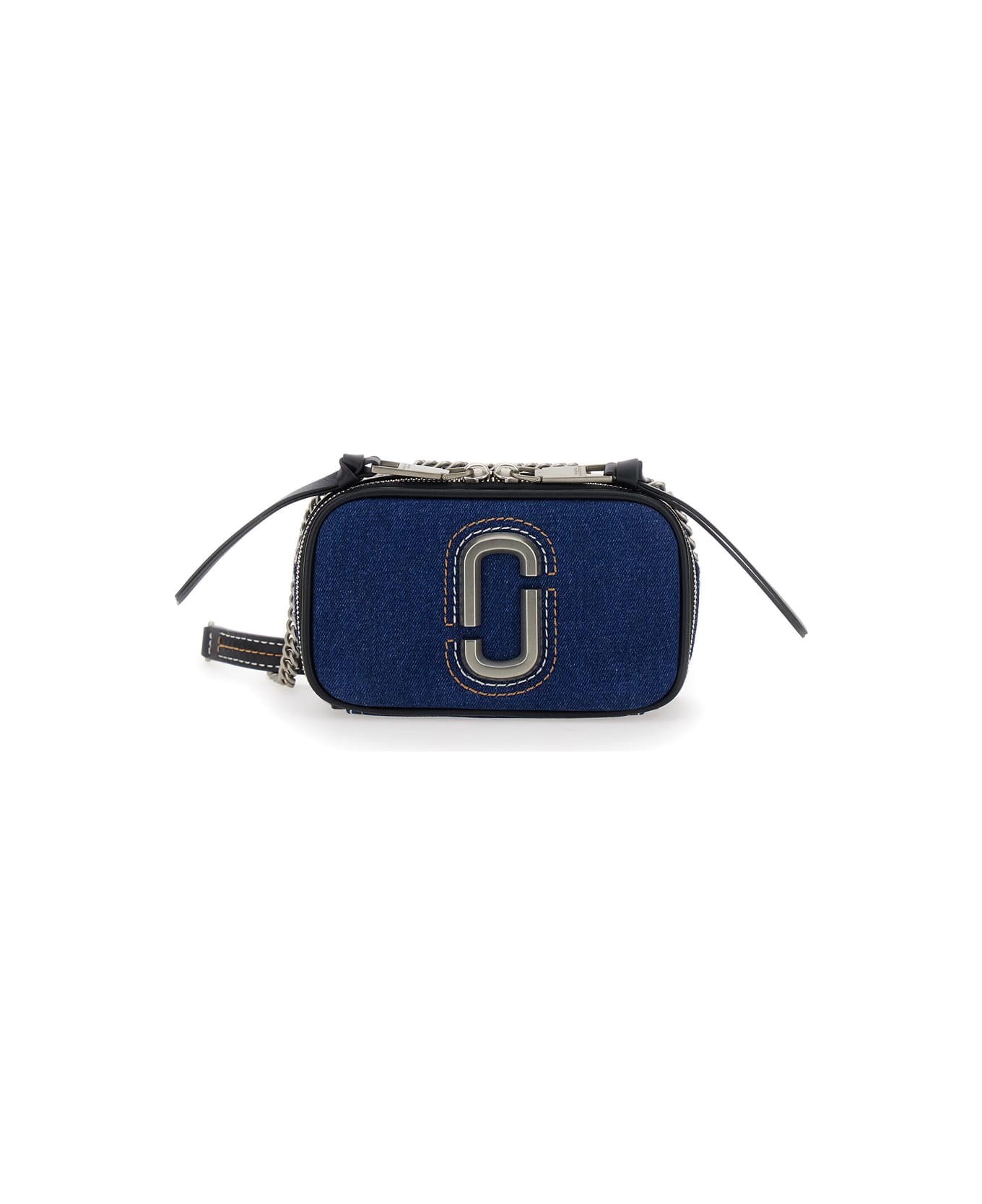 'the Snapshot' Blue Crossbody Bag With Logo Plate In Cotton Woman