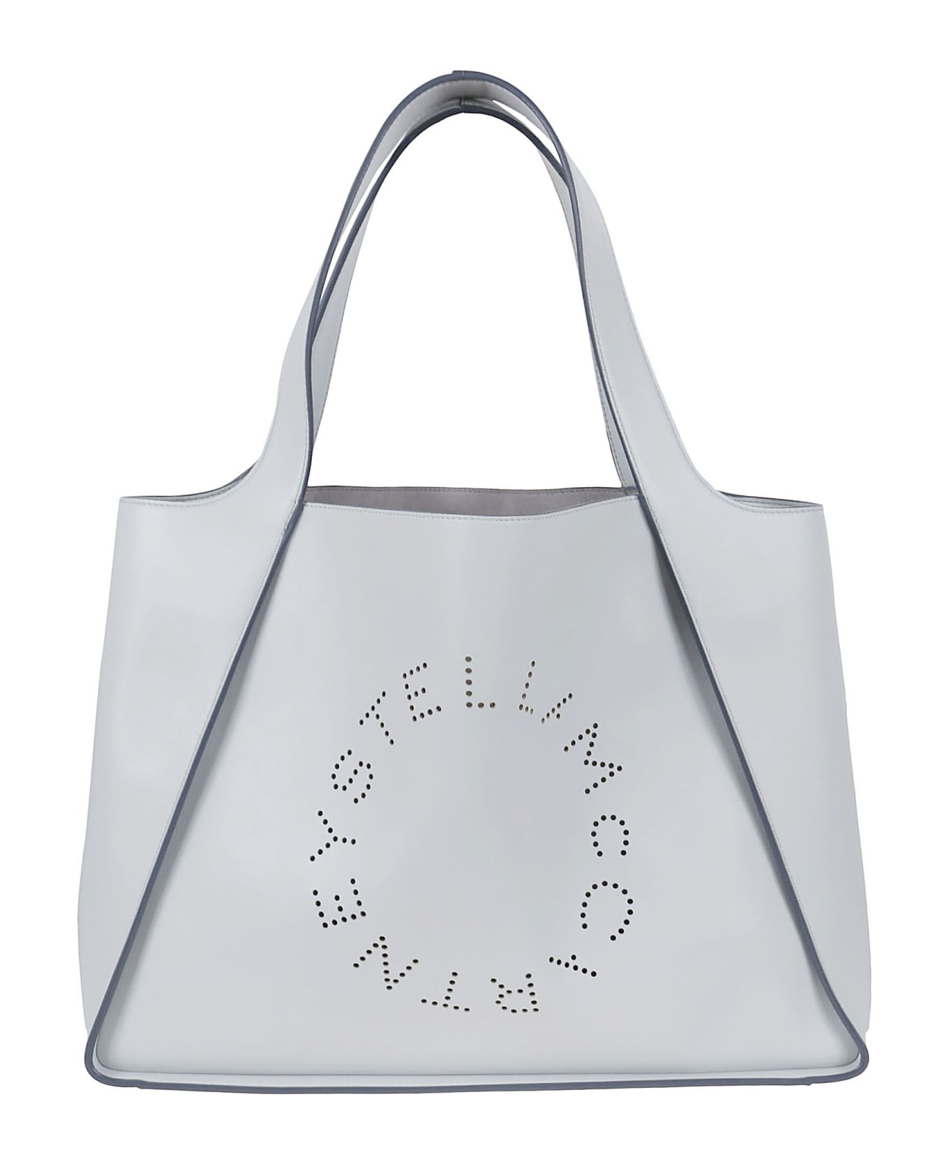Faux leather small Stella Logo tote bag from STELLA MCCARTNEY featuring perforated logo detail, two top handles, magnetic fastening, removable pouch and detachable shoulder strap. At least 50% of the main material of this product meets our conscious criteria: for example, it`s either organic, recycled, upcycled, or independently recognised as being better for the environment (such as linen, ramie, Tencel, etc. ).