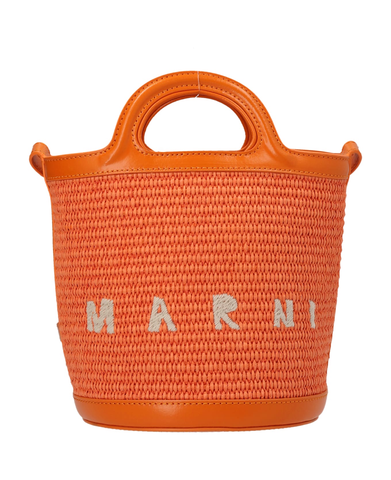 Tropicalia Mini' raffia and calf leather crossbody bag with logo embroidery and an inner pouch with drawstring. Composition: 52% cotton 48% polyamide