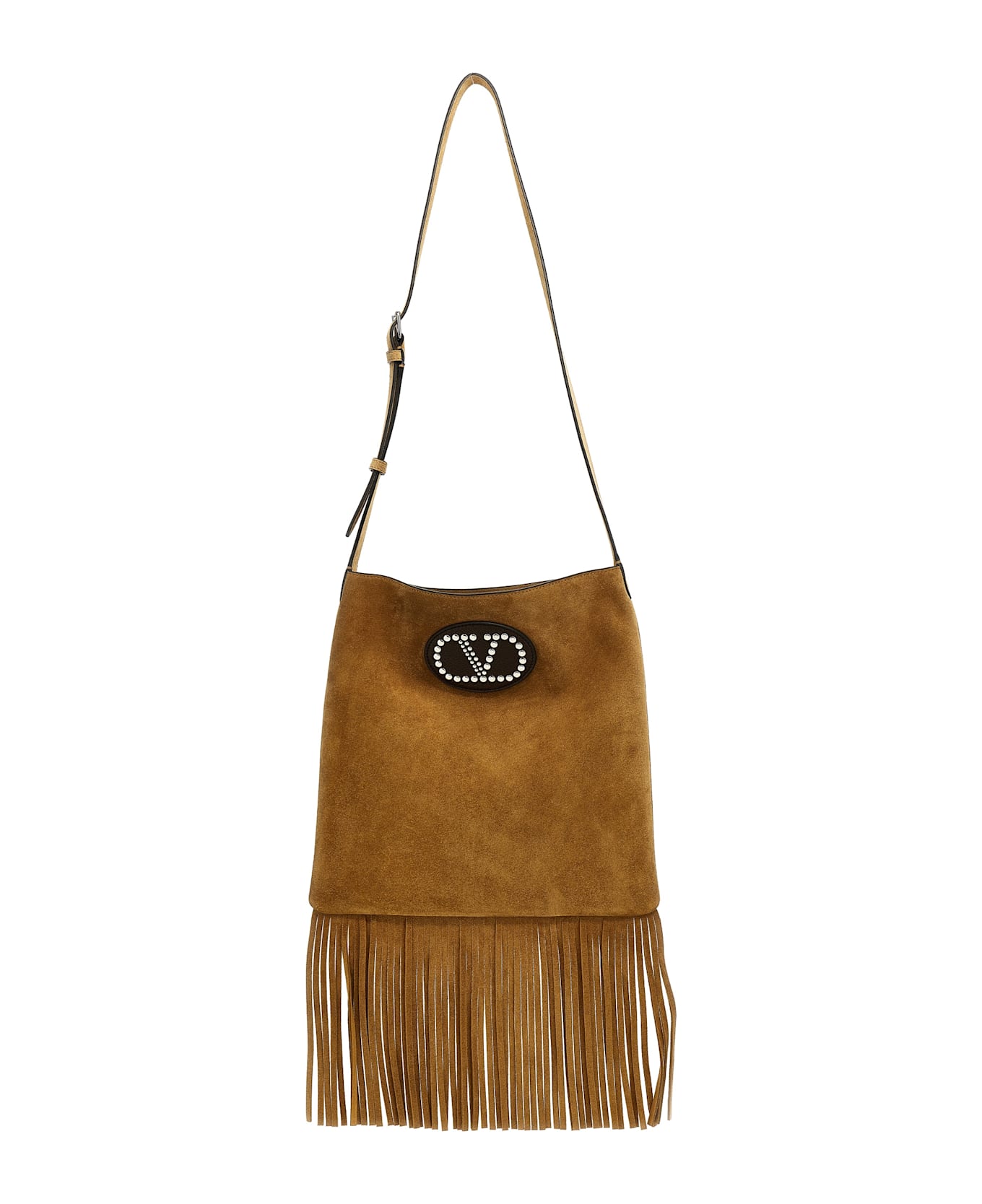 'Nellcôte' suede crossbody bag with fringes, leather patch with metal VLogo Signature, adjustable shoulder strap. Composition: 100% cow leather (Bos Taurus)