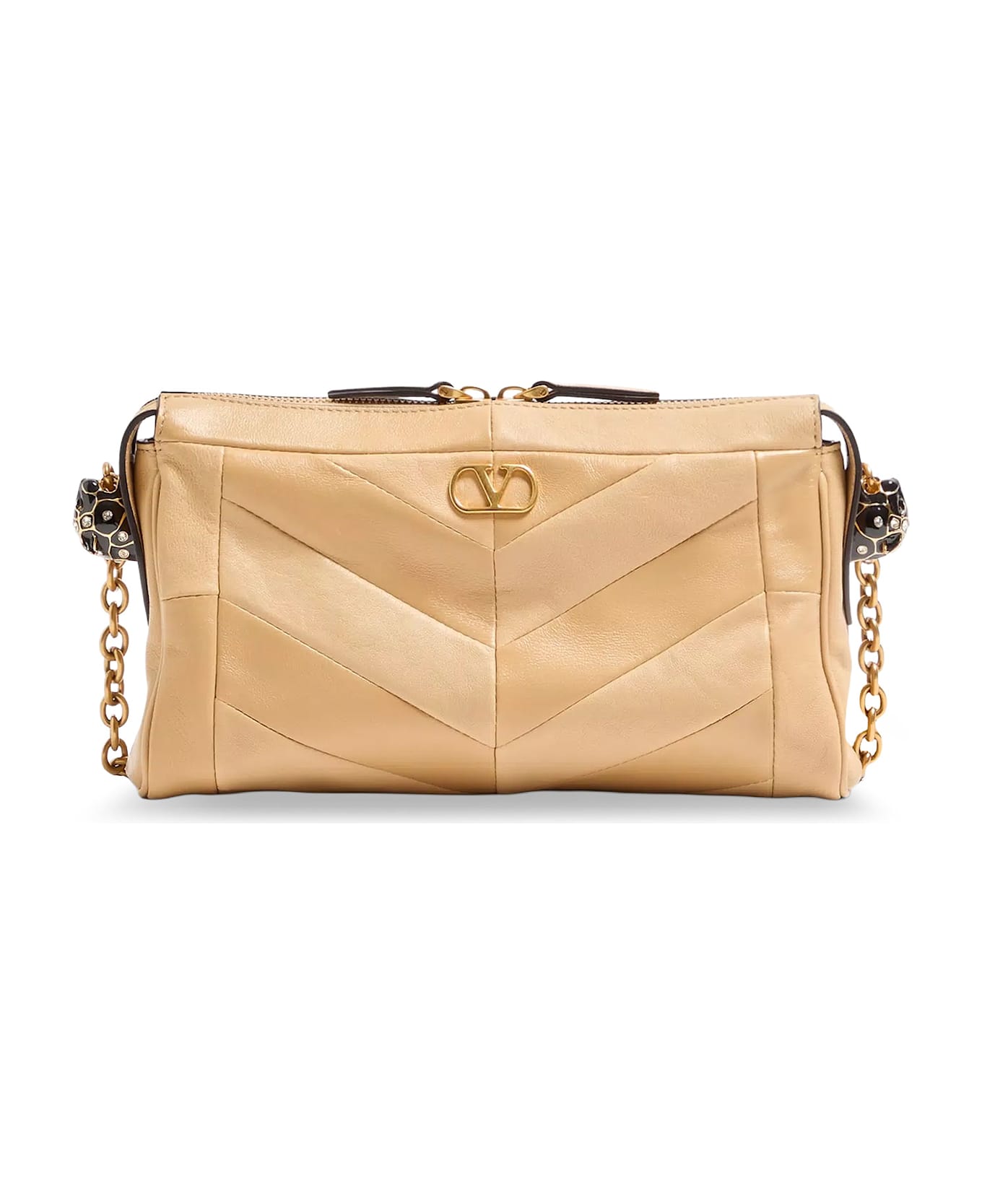 Chevron motif Zip closure Adjustable metal and leather shoulder strap VLogo Signature detail Enamelled feline heads with Swarovski® crystals Made in Italy Leather W: 24cm x H: 14cm x D: 6cm SKU: 8W2B0S99UYFDN3