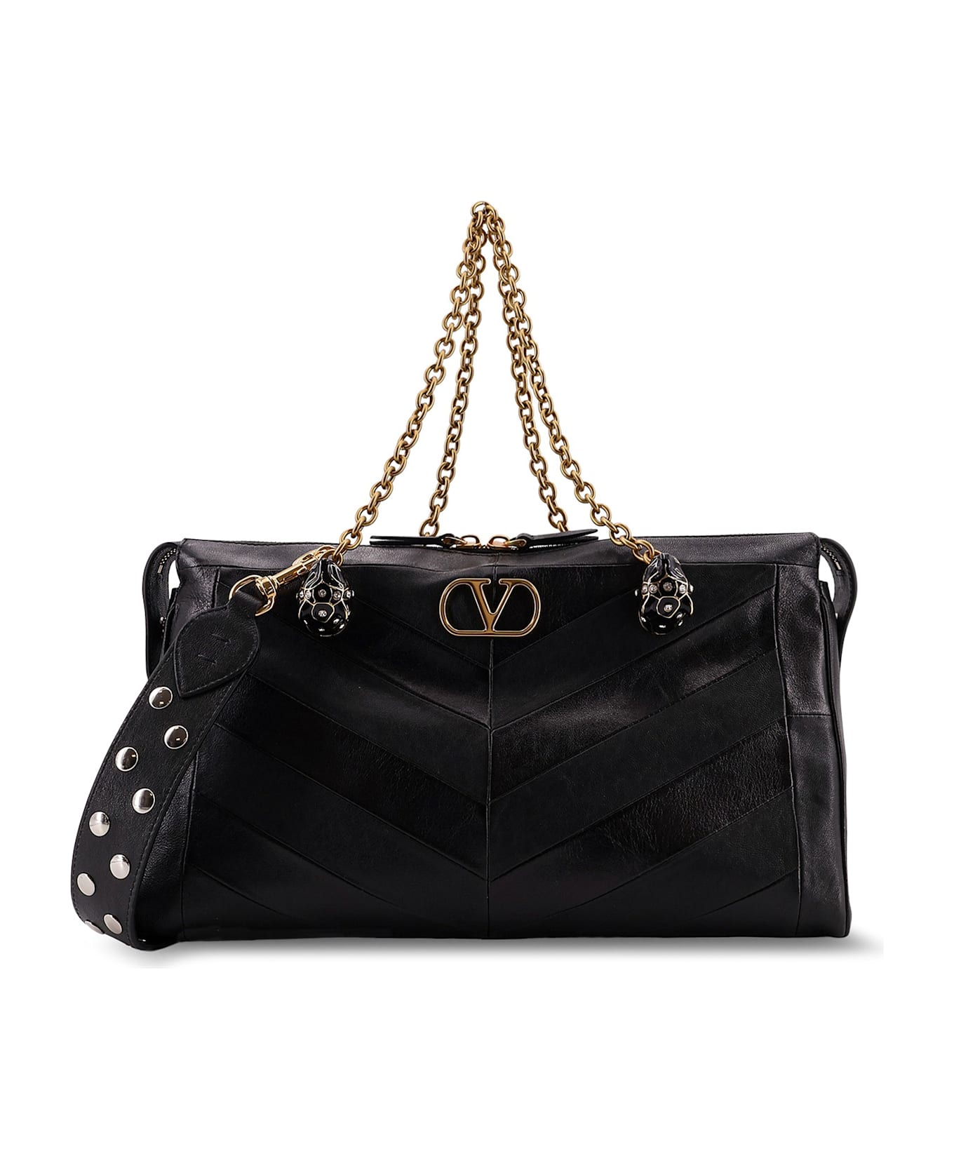 Chevron pattern with patchwork processing Feline head detail with Swarovski® crystals Zip closure with double slider Double metal shoulder strap Metal VLogo Signature element Removable studded leather shoulder strap Made in Italy Leather W: 33cm x H: 19. 5cm x D: 9cm SKU: 8W2B0S70UYF0NO
