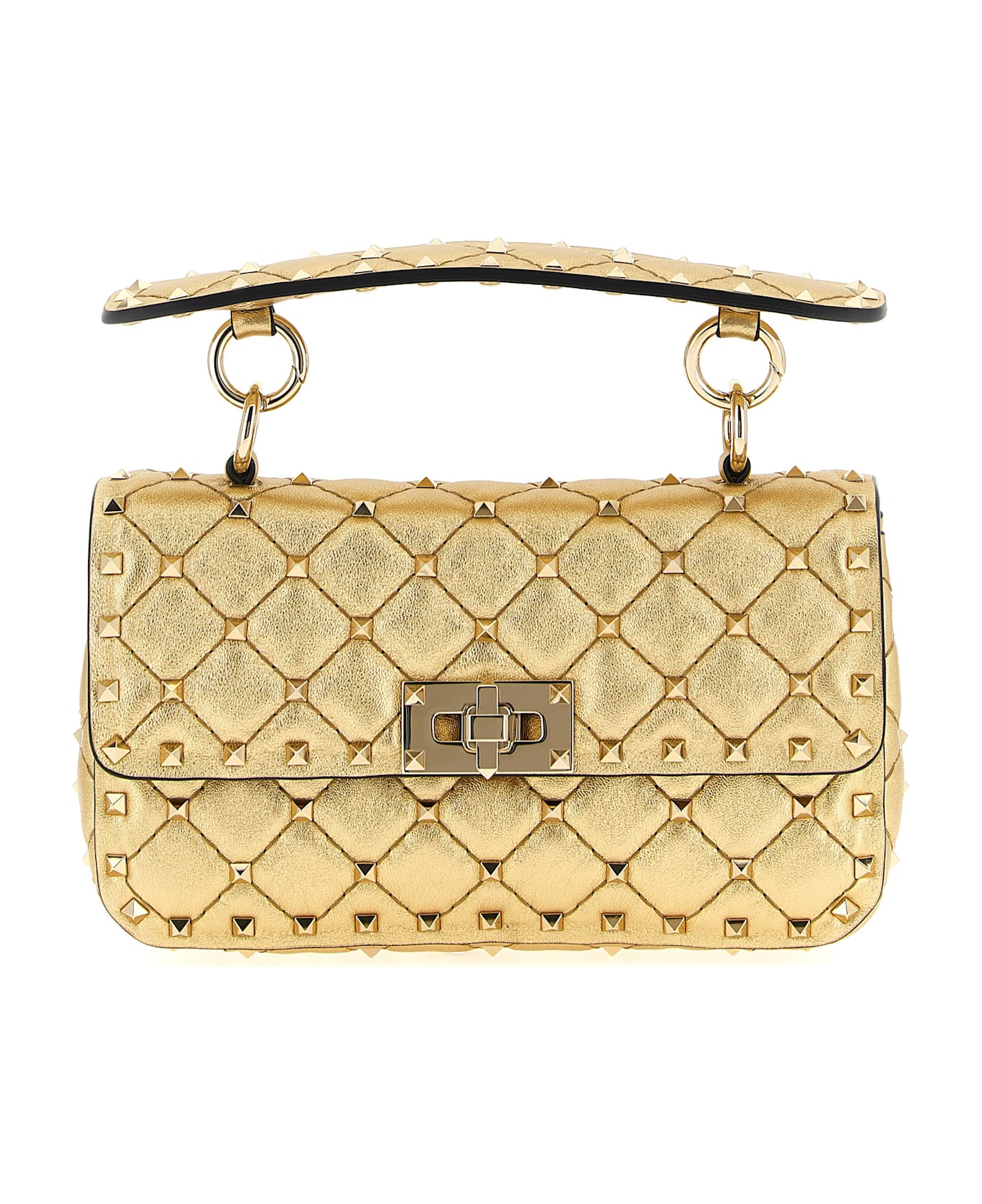 Small 'Rockstud Spike' shoulder bag in laminated garnet calfskin leather with all-over studs, flap closure with swivel, removable handle, and removable chain shoulder strap. Composition: 100% lamb leather (Ovis aries)