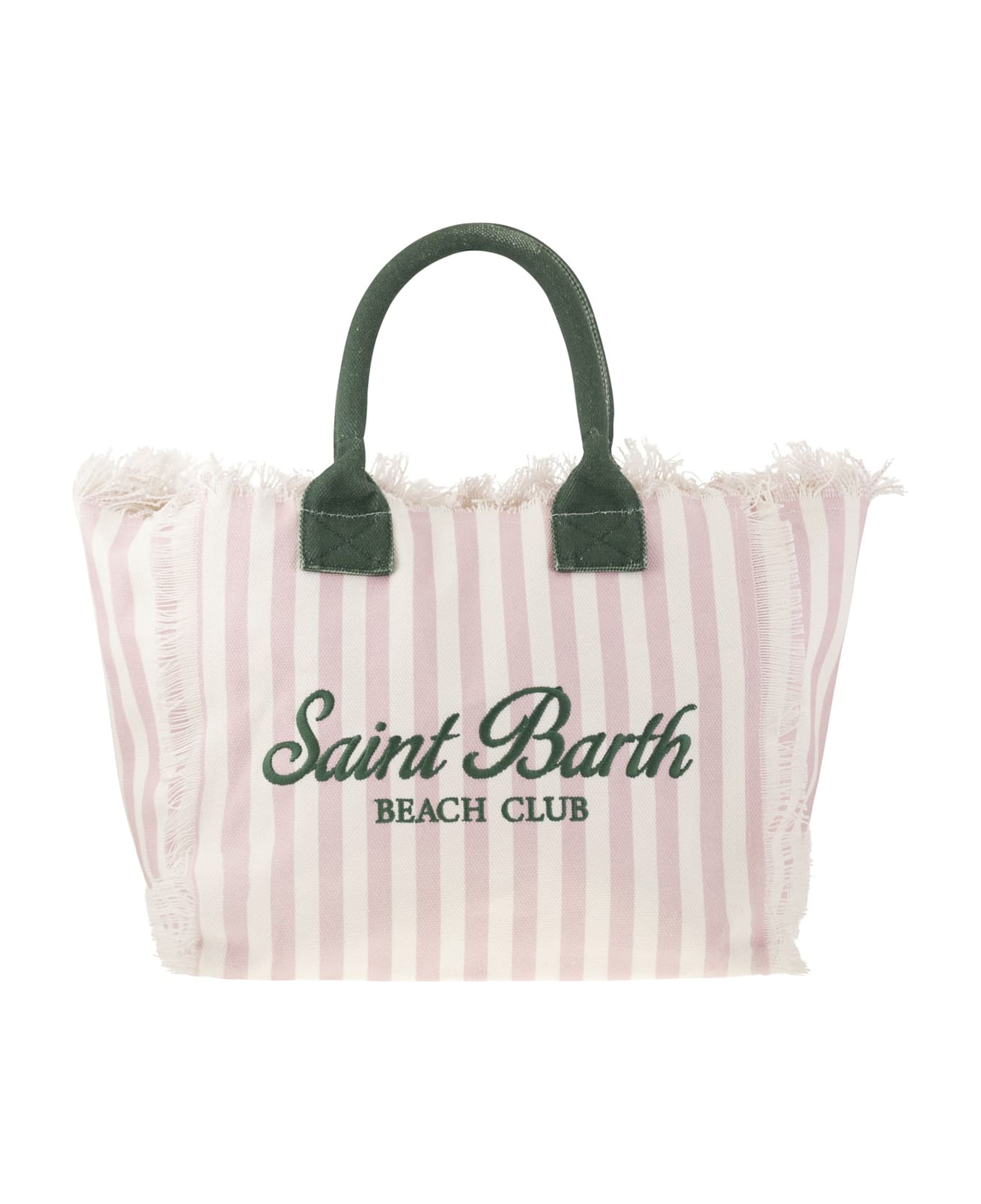 Designed not only for days at the beach and summer getaways, but also for leisure and holidays. The spacious interior makes it perfect for carrying essentials, while the sturdy cotton canvas ensures durability. The Vanity tote is decorated with a variety of prints and textures that add a touch of style to your ensemble. Elevate your fashion game with this trendy and functional accessory that seamlessly transitions from beach to city style. - Vanity tote bag in cotton canvas with fringes - Striped print - Printed Saint Barth logo - Internal zipped flap - Inside zip pocket DESIGNER ID: VANI001 03754H Composition: 100% Cotton
