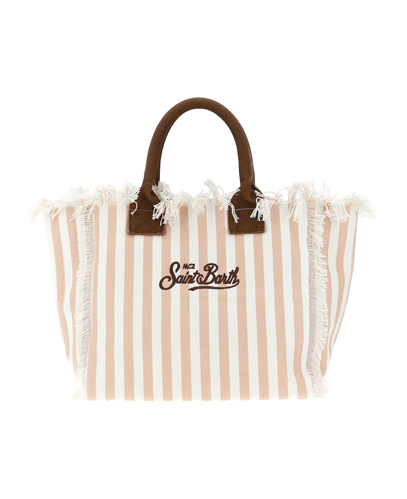 'Vanity' shoulder bag in striped cotton canvas canvas, fringed edges, logo embroidery on the front and back, double fixed handle, top zip closure, cotton lining. Composition: 100% cotton