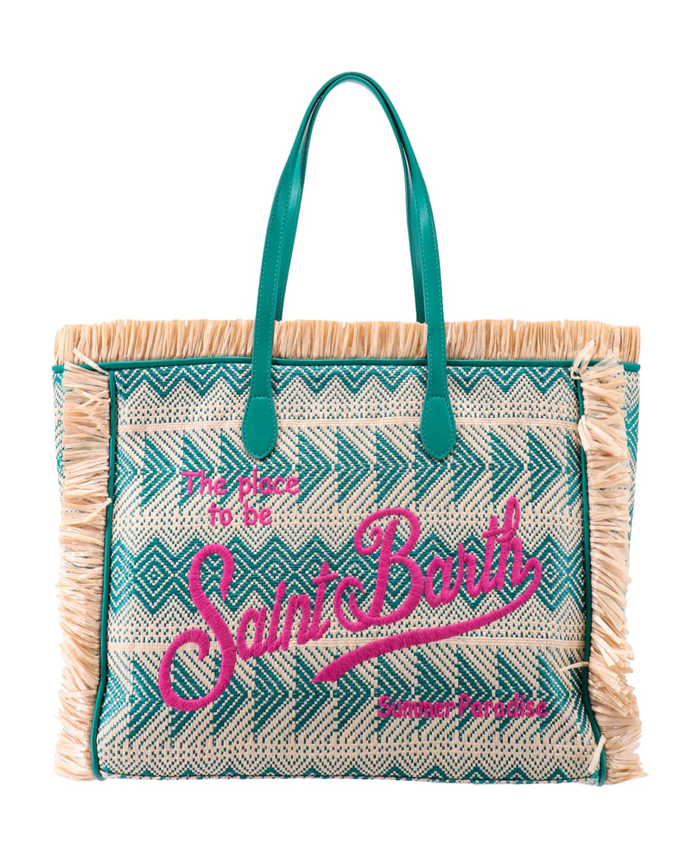 - Closure With Zip - Leather Handles - Frayed Profiles - Internal Pockets - Straw