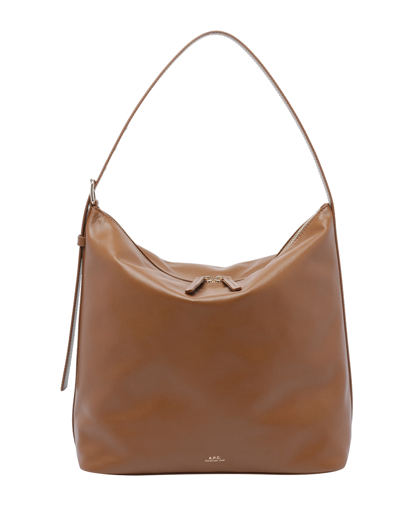 A. P. C. brown Vera shoulder bag, zip closure, inner open pocket, adjustable shoulder strap, frontal logo