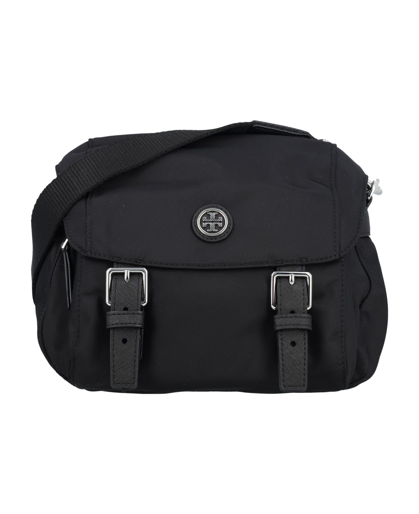 Virginia Small Messenger By Tory Burch. Featuring: Nylon Crossbody Bag Flap With Magnetic Snap Closure Adjustable, Removable Webbing Crossbody Strap 1 Exterior Front Zipper Pocket 1 Exterior Back Slit Pocket 1 Interior Front Slit Pocket 1 Interior Back Zipper Pocket