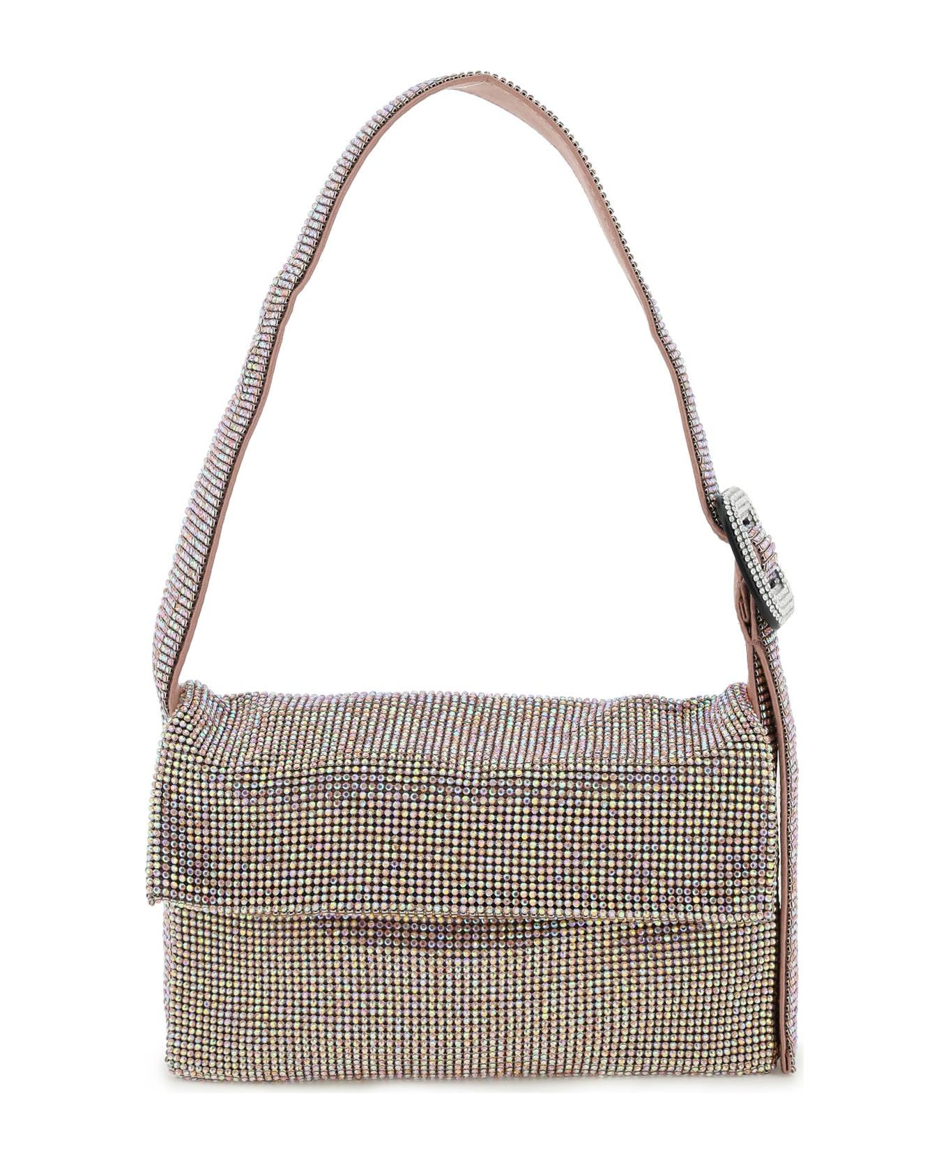 Vitty La Mignon bag by Benedetta Bruzziches handcrafted in metal mesh with strass. Handle with decorative buckle embellished with all-over rhinestones, zip closure under the flap, silk satin lining.