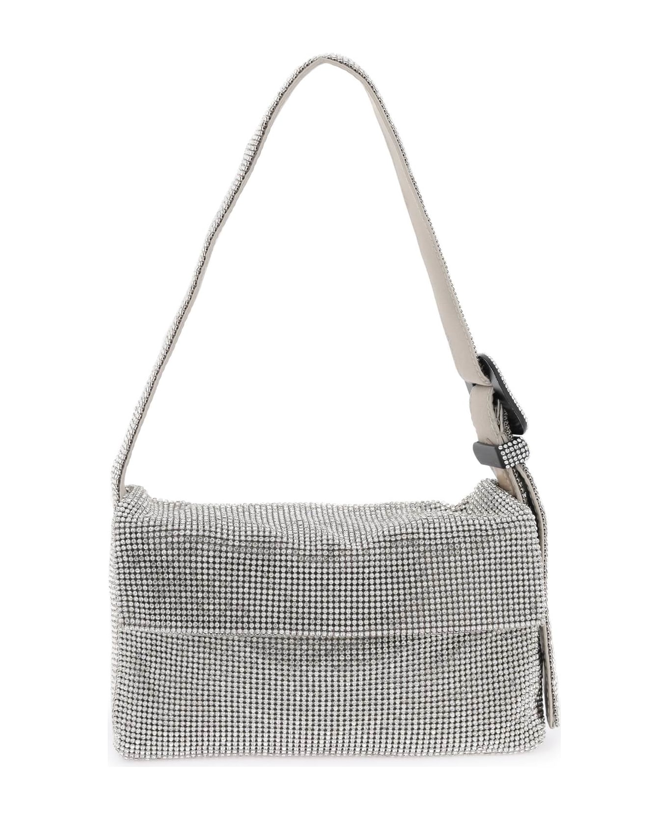 Vitty La Mignon bag by Benedetta Bruzziches handcrafted in metal mesh with strass. Handle with decorative buckle embellished with all-over rhinestones, zip closure under the flap, silk satin lining.