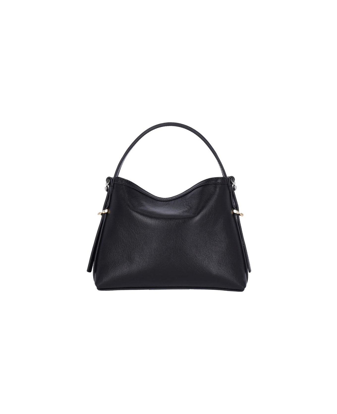 Givenchy Voyou nano bag in black hammered leather with top handle, thin removable shoulder strap, adjustable straps on the front, silver embossed logo on the front, and a single inner compartment.
