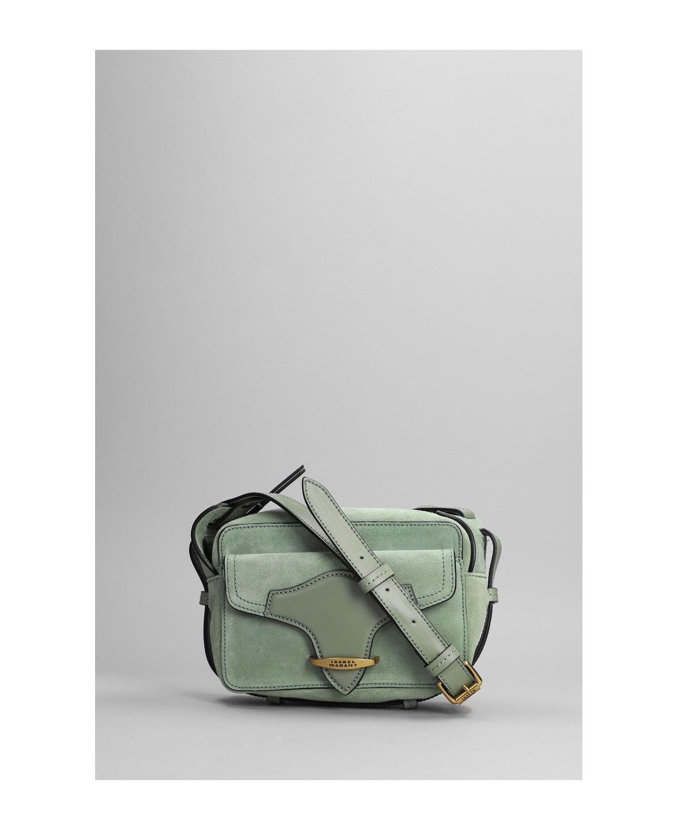 Wasy Shoulder bag in green suede, adjustable shoulder strap, flap closure, leather detail, 100% suede, Made in Tunisia, Height 125 mm, Width 180 mm