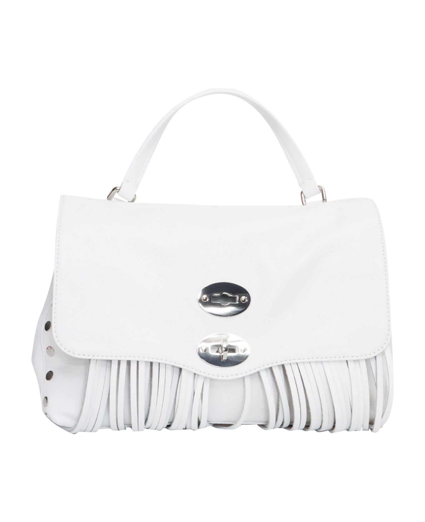 White postina Valmarana size S in cowhide with handle and shoulder strap, flap closure with clip, side studs.