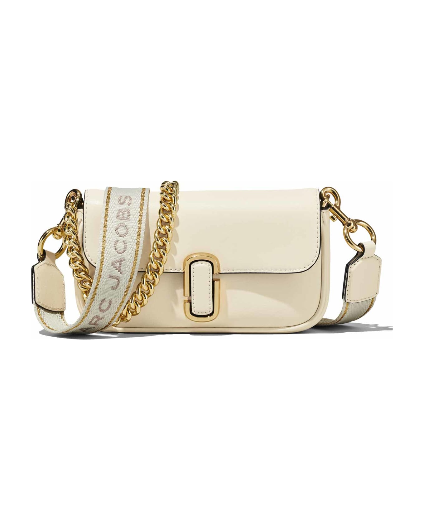 White leather shoulder bag. Smooth cow leather with polyurethane coating. Magnetic closure. Removable shoulder chain strap. Removable and adjustable webbing strap. 1 interior slip pocket, 1 interior zip pocket, 1 back slip pocket. Faille lining. 19 x 12 x 4 cm. 100% cow leather. Made in Philippines. Designer colour: CLOUD WHITE