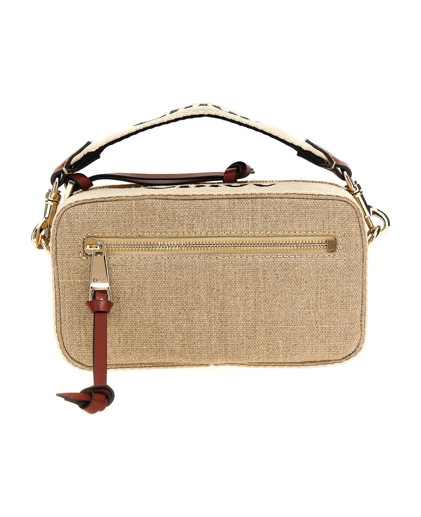 Woody fanny pack in linen canvas, zipper closure, ribbon with embroidered logo, adjustable leather shoulder strap. Composition: