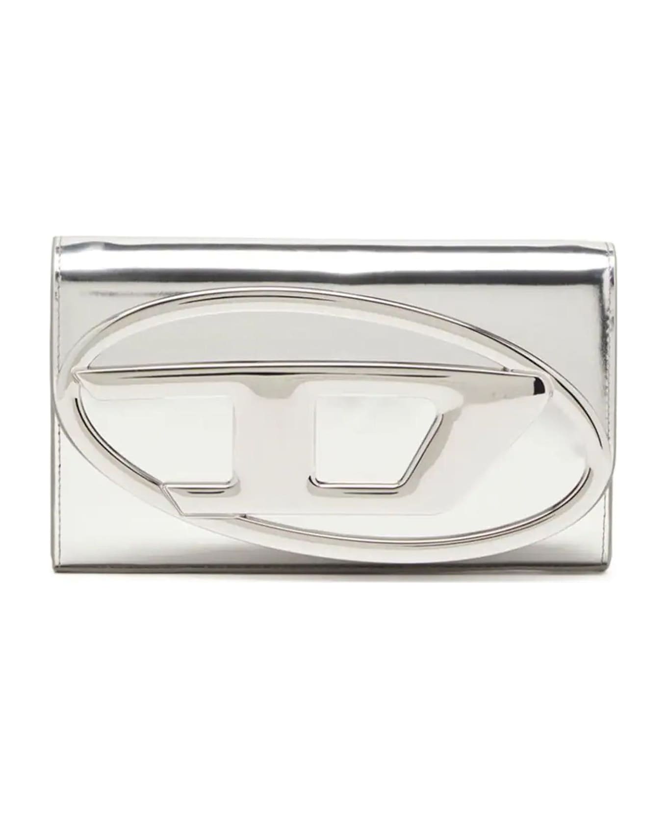 Silver 1Dr mirrored leather wallet, logo plaque, adjustable waist strap, Detachable and adjustable shoulder strap, 5 internal compartments, 8 card slots, Zip coin pocket, Width 20 x Height 13 x Depth 3 cm, shoulder strap 105 cm Composition: 100% Cow Leather