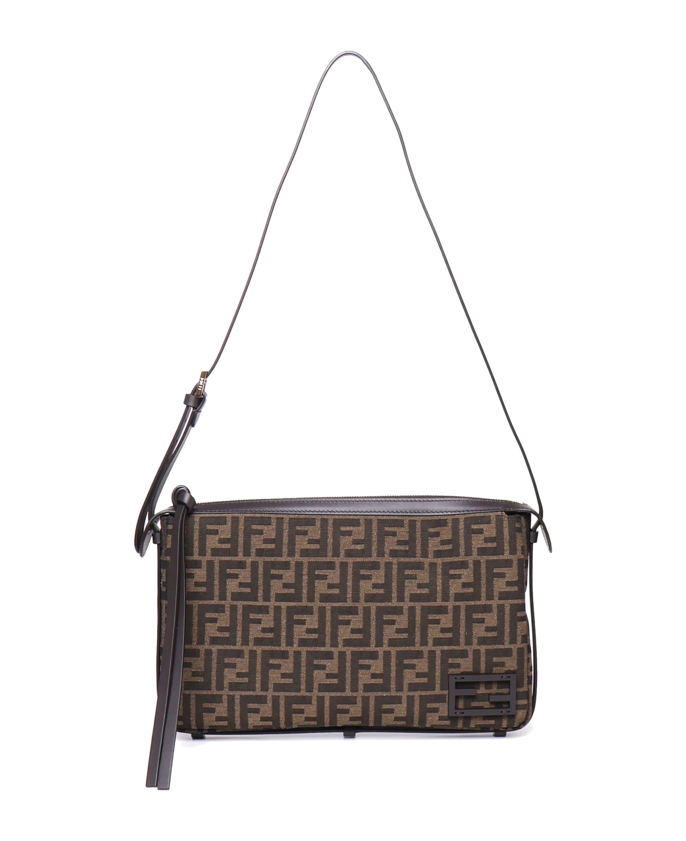 -Simply Fendi medium size bag -Soft shoulder bag -Made of jacquard fabric with iconic FF motif in shades of brown -Decorated laterally with the iconic FF trim in dark brown painted leather -Closure with long knotted zip puller in dark brown calfskin -Made in Italy -Dimensions: 20x4. 5x34. 5 cm -Made in Italy -Colour: Tobacco
