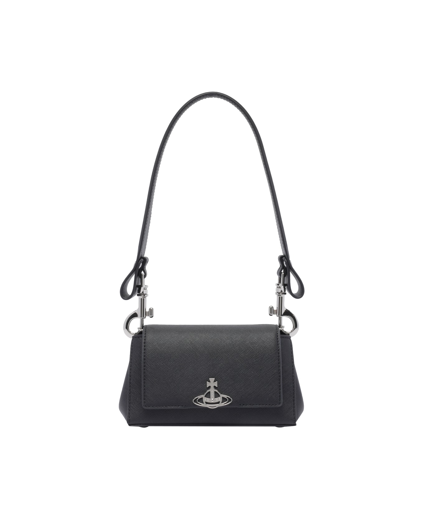 Vivienne Westwood black small Hazel shoulder bag, magnetic closure, 1 inner slot, removable shoulder strap, chain removable strap, frontal logo