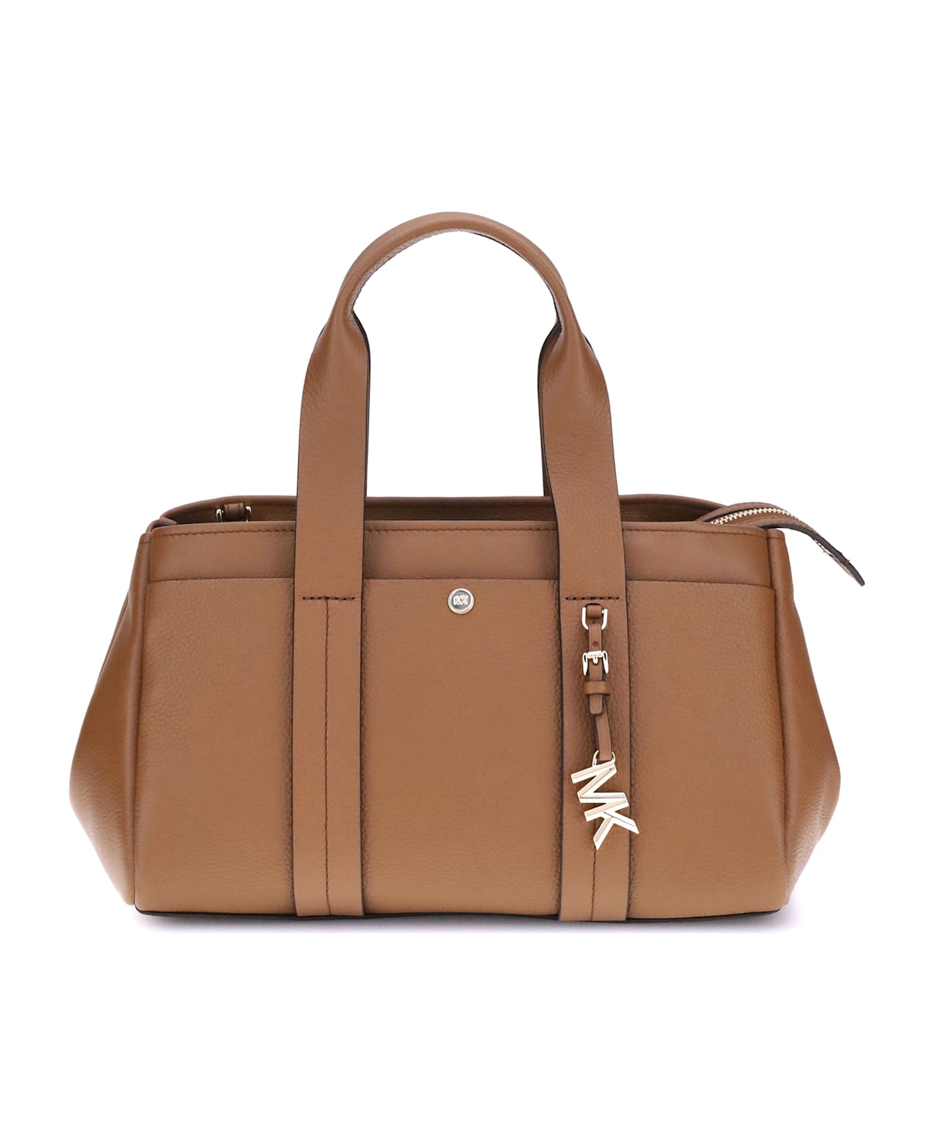 The small romee handbag by michael kors is a compact and refined accessory made of grained leather with an elegant and durable texture. it is embellished with a pendant bearing the iconic mk initials, the brand's signature detail. sturdy top handles allow it to be carried comfortably on the shoulder, while the adjustable shoulder strap offers versatility and freedom of movement. perfect for accompanying every moment of the day in style.